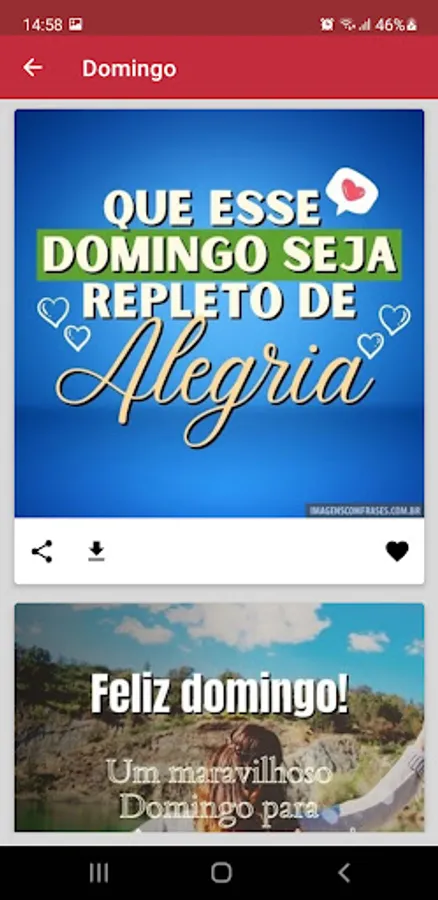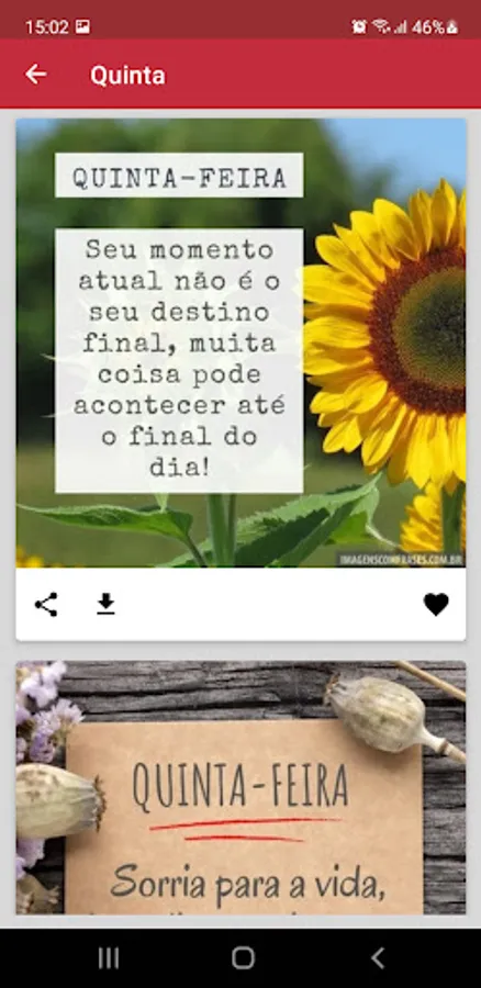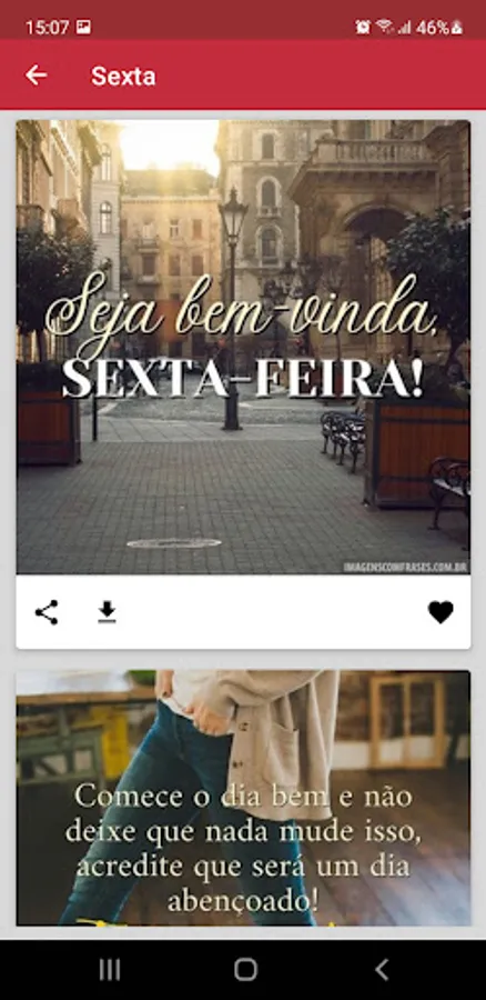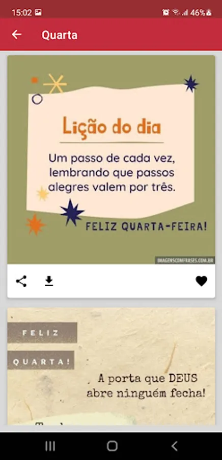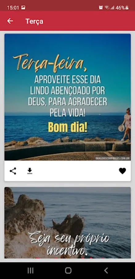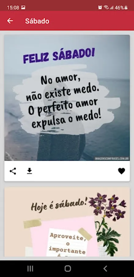 This image app with phrases also has the image of the day, with a beautiful phrase for each day of the week and several other categories with phrases of love, motivation, reflection, good morning, good afternoon and good night, ready to use as images for WhatsApp status and send as a message to Facebook and Instagram.