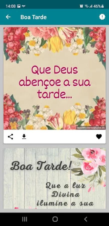 With the application Bom dia Boa tarde e Boa Noite you will have images for WhatsApp status and share with friends, family and whoever else you want on Facebook, Twitter and Instagram. They are beautiful images with phrases of good morning, good afternoon and good night 2023 and also other categories with phrases of motivation, reflection, joy, love, gratitude, biblical, beautiful, days of the week, among other message options with frequent updates.