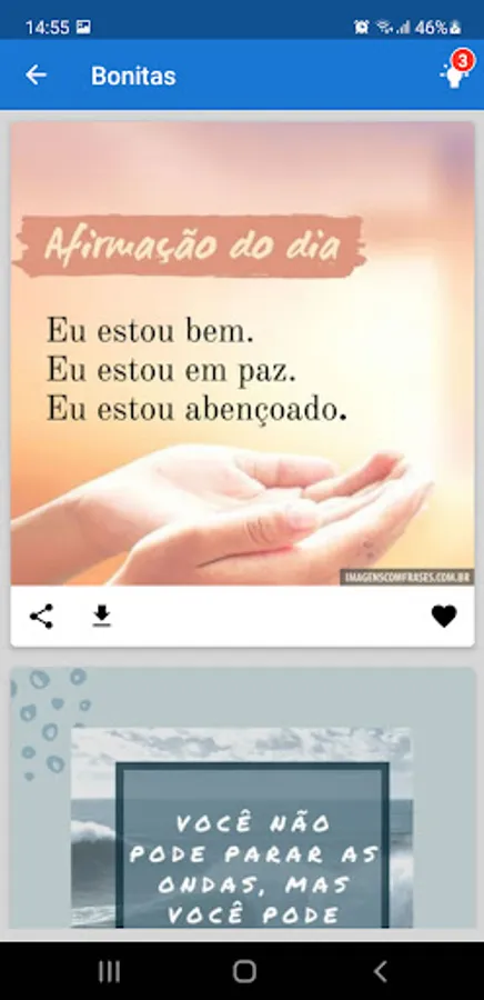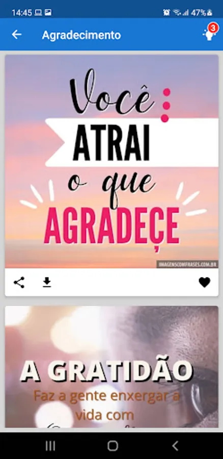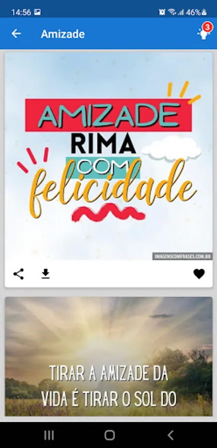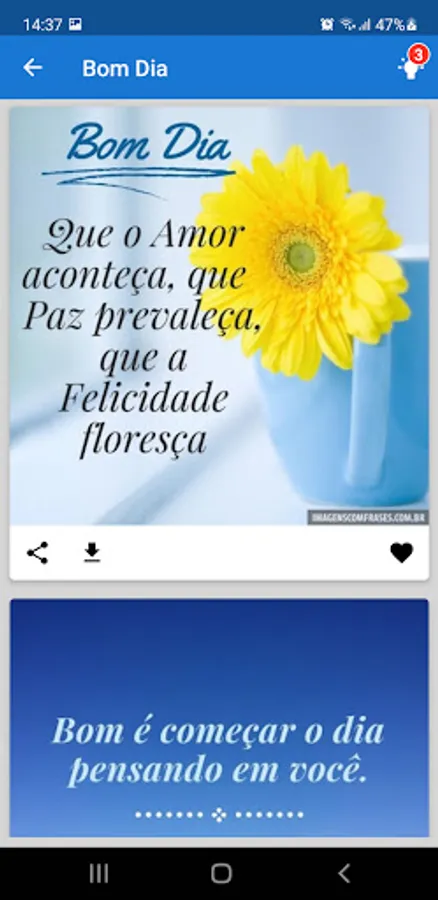 The Images with Phrases for WhatsApp 2023 application has several image options for WhatsApp and social networks. You will have images of love, friendship, biblical, birthday, good morning, good afternoon, good night, indirect, funny, days of the week, motivation, reflection, thanks, commemorative dates, ready to share and put in your status.