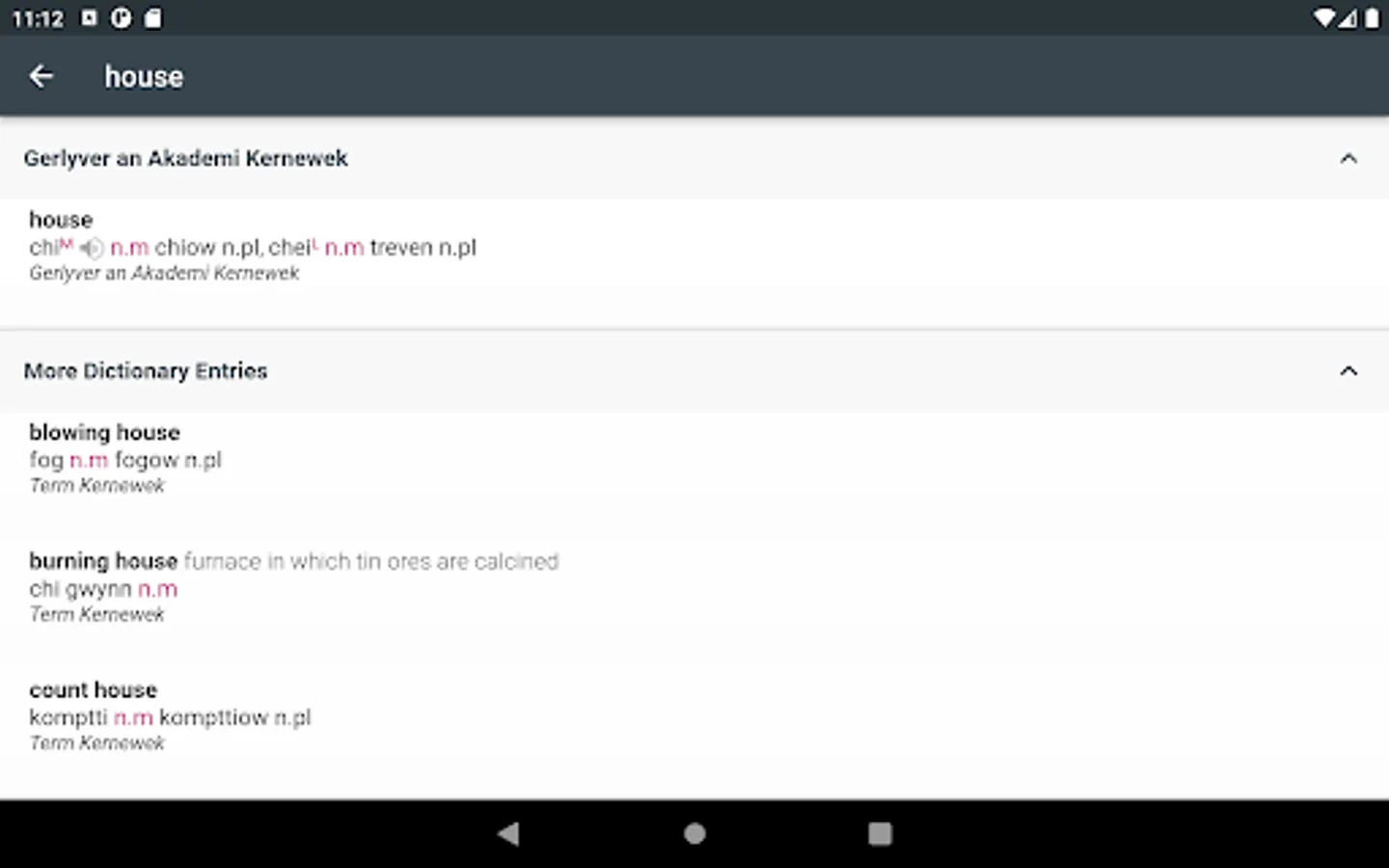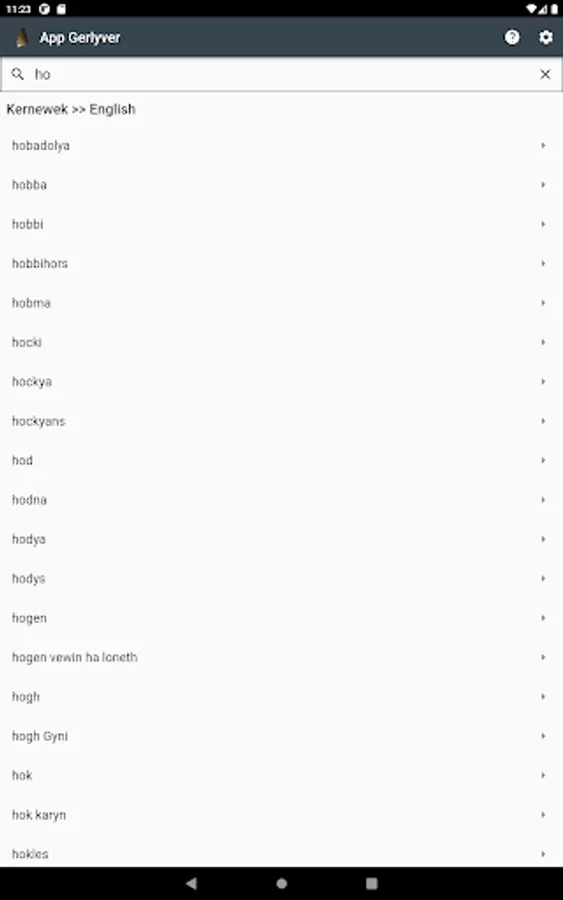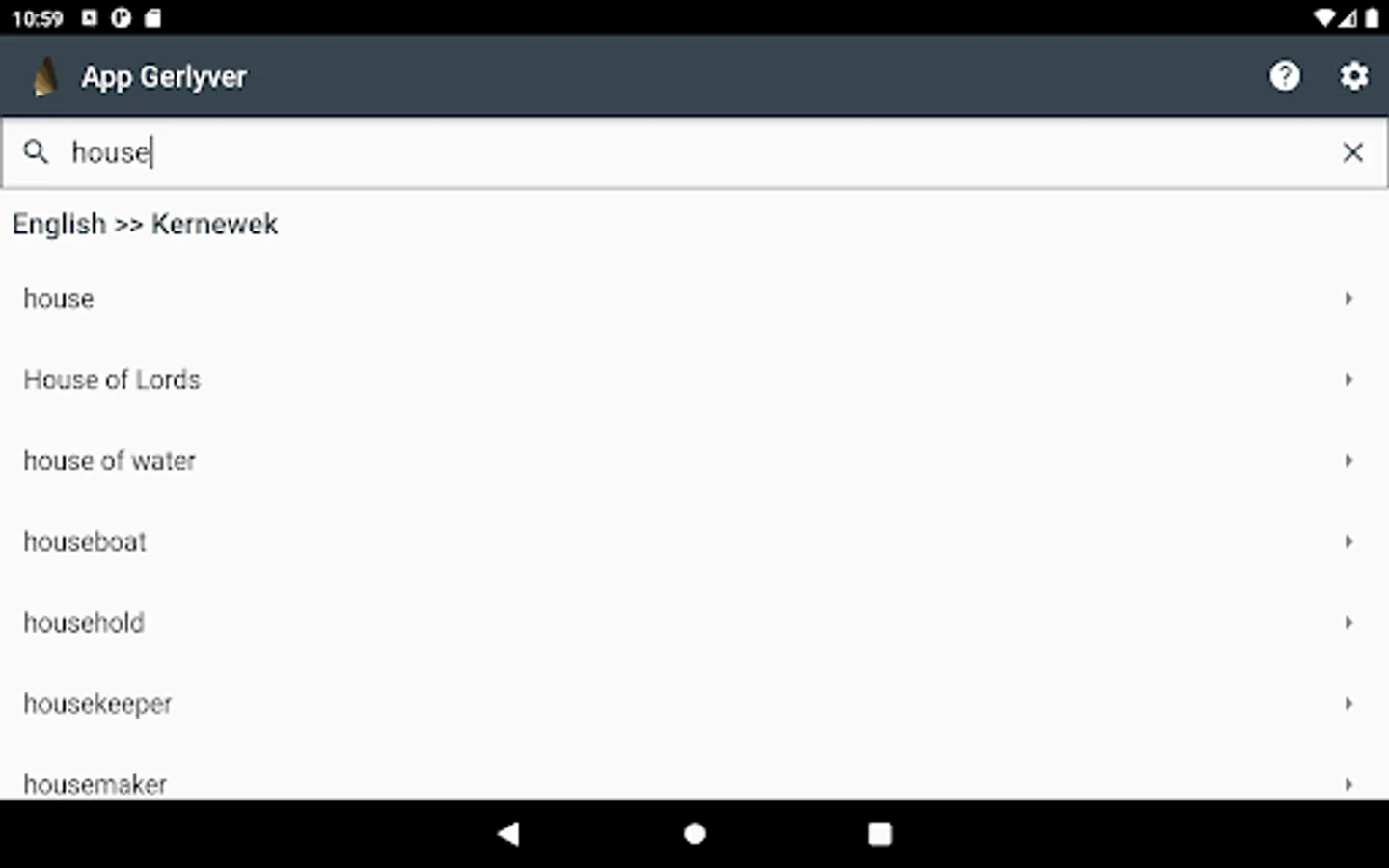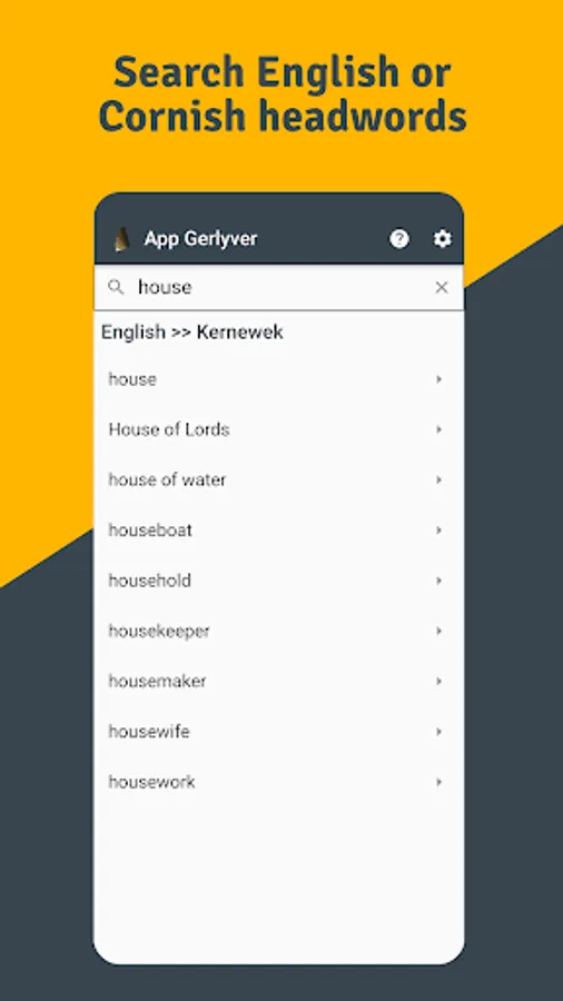 The App Gerlyver allows you to search the Gerlyver an Akademi Kernewek dictionary, as well as to standardized terminology, from mobile devices.