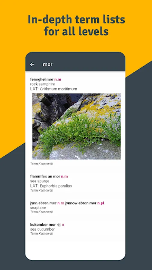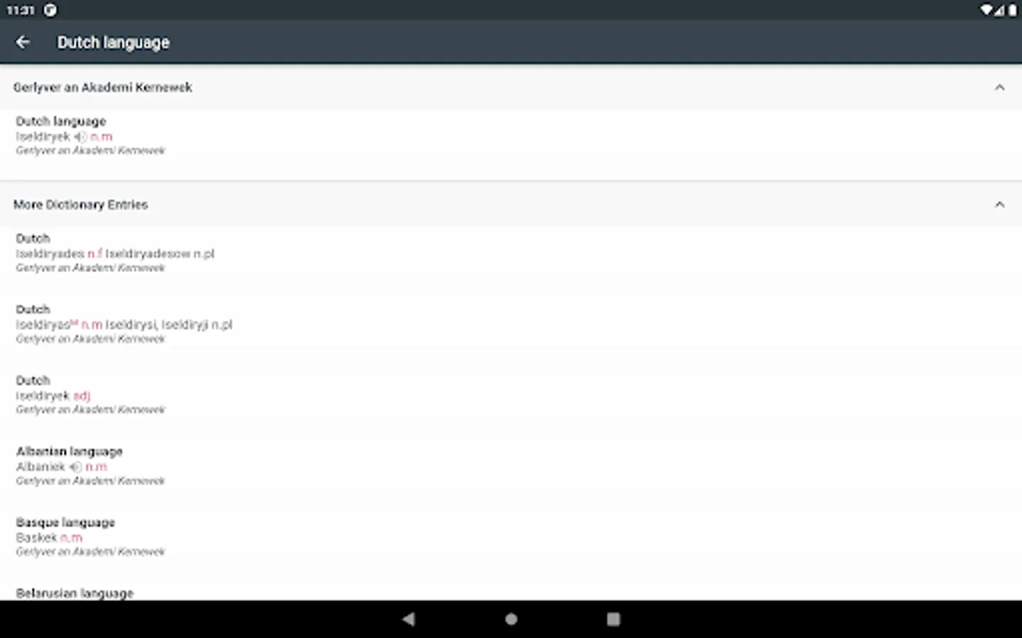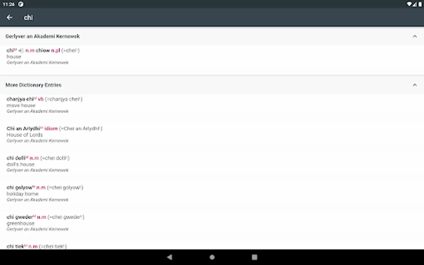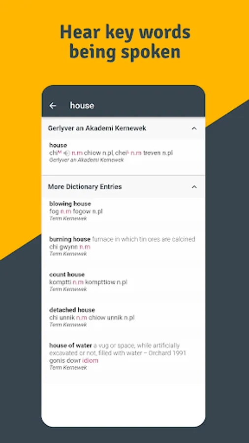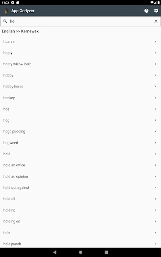 The App Gerlyver allows you to search the Gerlyver an Akademi Kernewek dictionary, as well as to standardized terminology, from mobile devices.