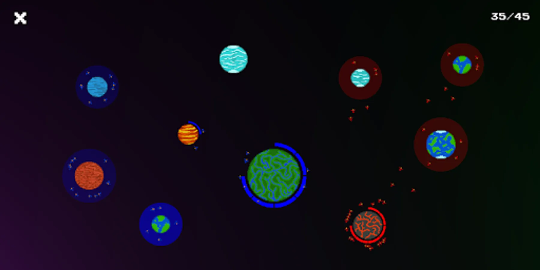 SpaceBattle is a strategic game for one or more players. Your mission will be to build a fleet and take over all planets. You can play with your friends or find someone online.