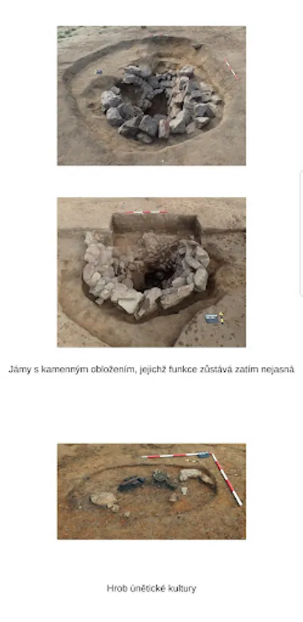 In connection with the revitalization of the territory of Lítožnické rybníky and the bed of the Říčanský brook under their dam, a gradual rescue archaeological research connected with the course of earthworks took place between 2016 and 2020. The ponds were in a state of disrepair and the side dams built in the 1960s and 1970s were eroded. During their removal and especially during the draining and siltation of ponds, a considerable number of situations of different ages were archaeologically examined. The oldest can be considered the finding of the tomb of the bell-shaped cups culture (2500 - 2200 BC) from the end of the Eneolithic and several slightly younger tombs of the Unetic culture (ca. 2300 - 1700 BC) of the Bronze Age. Objects related to the defunct medieval settlement of Litožnice, which was located mainly north of the old dam of the pond, were also examined in the place. Objects related to the defunct medieval settlement of Litožnice, which was located mainly north of the old dam of the pond, were also examined in the place. However, it was essential to explore part of a large settlement from the early Roman period (Roman period refers to the period of the first four centuries AD in Central and Northern Europe, the early Roman period occupies almost the entire first two centuries). Traces of this settlement were recorded in the years 1968-1975 east and northeast of the village Dubeč on the banks of the Říčanský stream by surface collections in the surrounding fields and small rescue research. Archaeological research at the site of the ponds, however, revealed on a much larger scale other archaeological situations and a large part of the settlement from the early Roman period.
