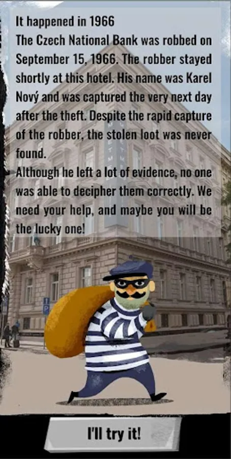 Are you a guest of hotel MeetMe23 in Prague? Test your logical thinking skills in a classic exit game at the hotel MeetMe. Follow the trace of an ancient robbery and try to overtake the investigator at that time, who couldn’t solve this case ... And there is nice reward waiting for you …