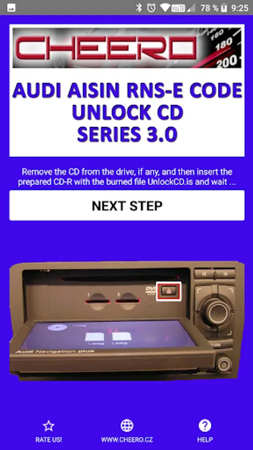 Insert the created CD-R into the Audi Aisin RNS-E navigation and after a while you have the code.