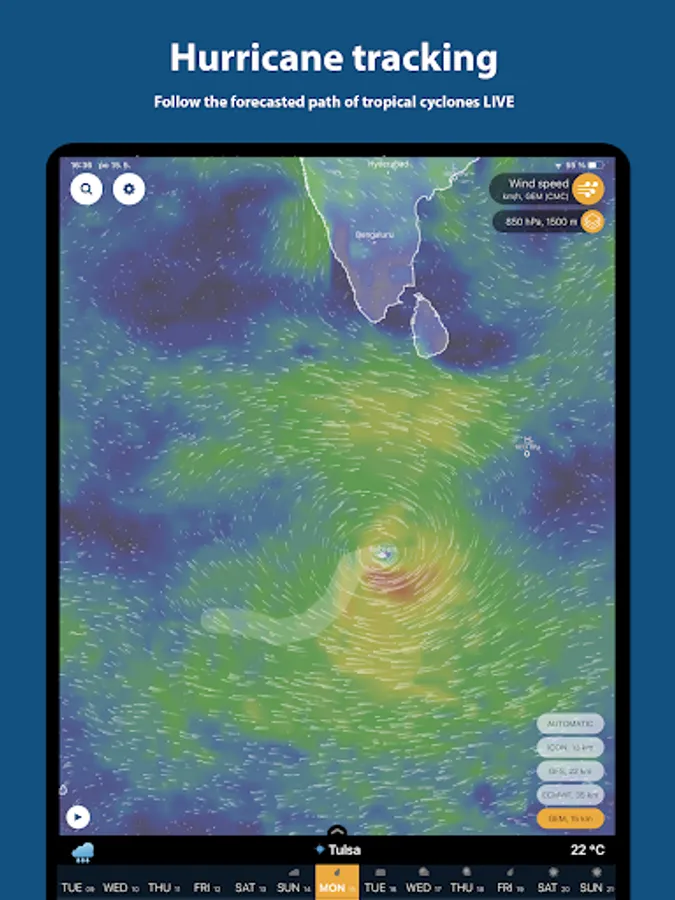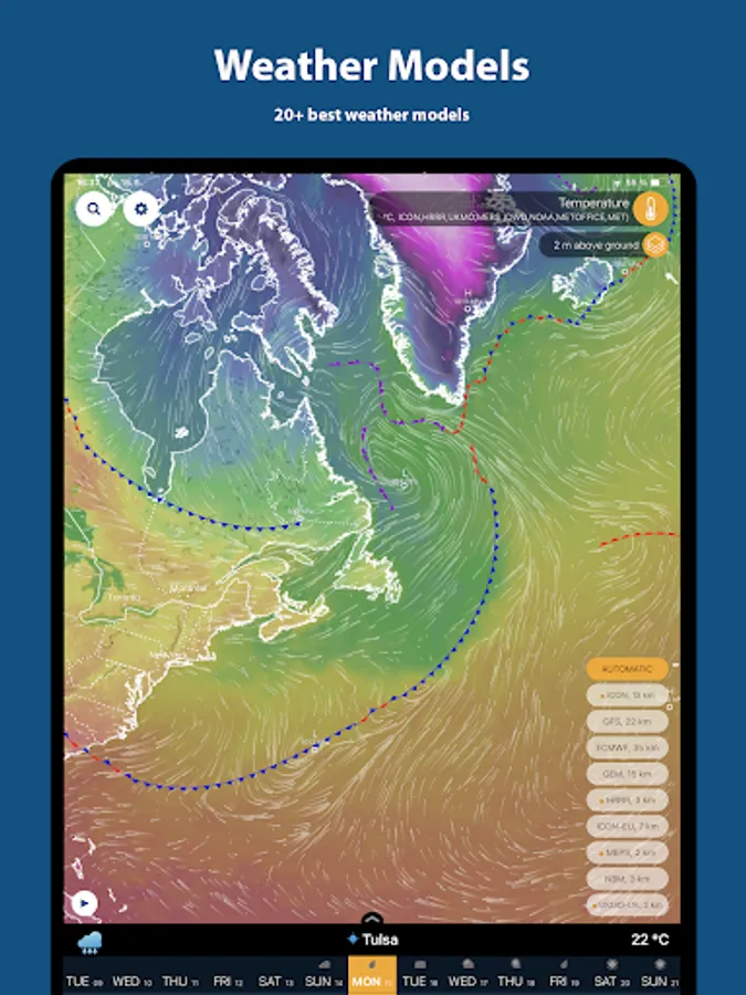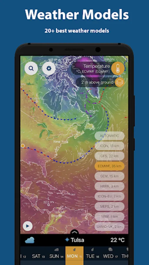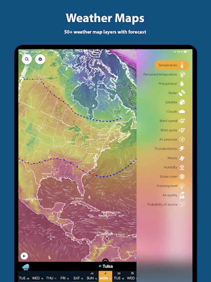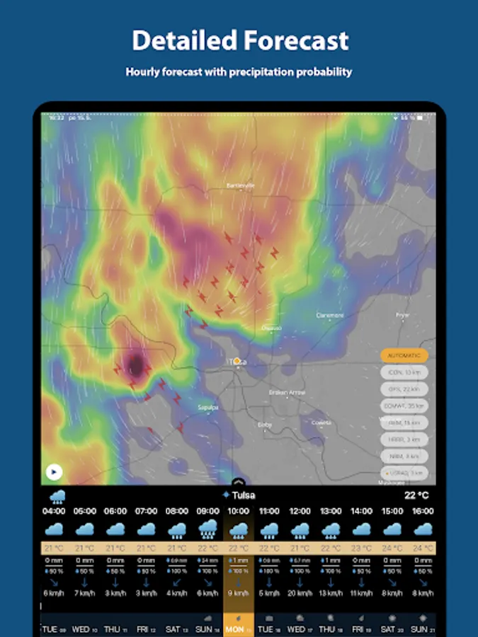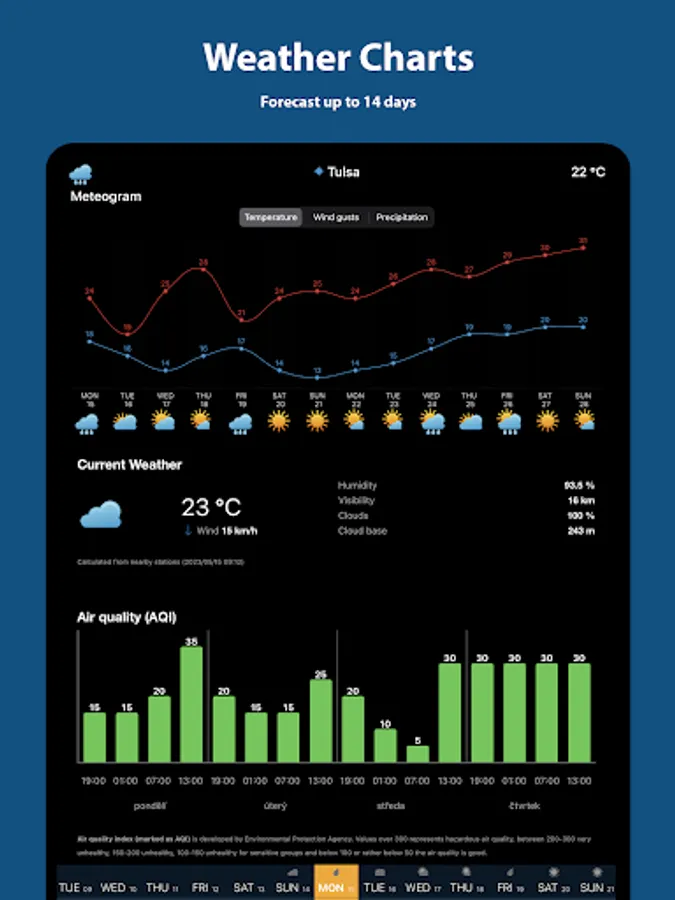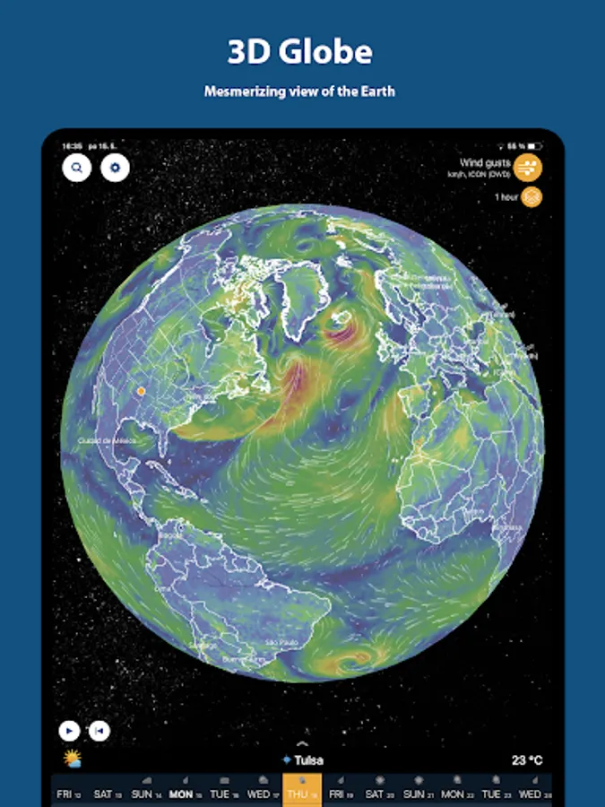The app combines highly accurate weather forecast for your location with a 3D map showing development of weather in a broader area in a very interesting way. This allows you to see where precipitation is going to come from or where the wind is blowing from. The uniqueness of the app comes from the amount of data displayed. Forecast of weather, precipitation, wind, cloud cover, atmospheric pressure, snow cover and other meteorological data for different altitudes is available for the whole world. Moreover, the app is completely free of ads.
