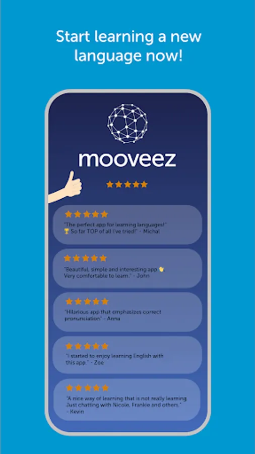 Mooveez is the best language learning app for anyone who wants to learn a new language - it's fun and you can learn eight different languages: 🇬🇧 English,🇪🇸 Spanish,🇫🇷 French,🇩🇪 German,🇷🇺 Russian,🇮🇹 Italian,🇨🇿 Czech, and 🇵🇱 Polish.