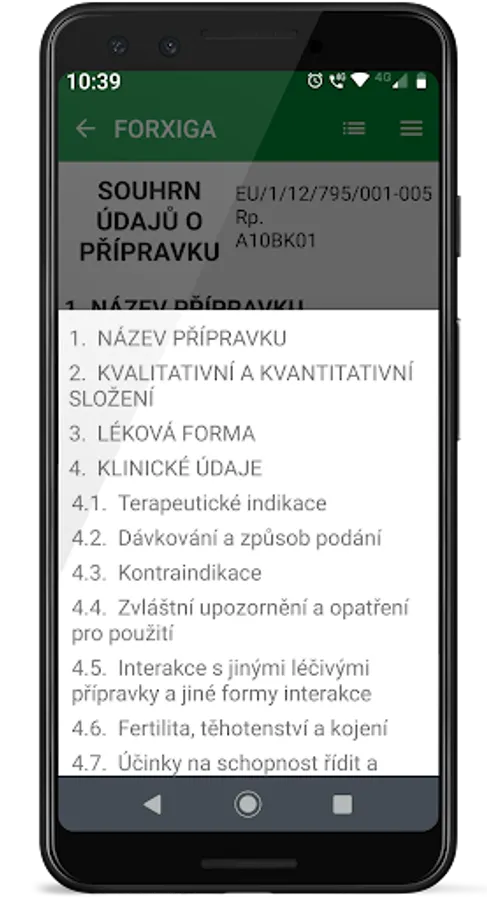 The application allows you to search the online database, which contains the main information about medicines such as: