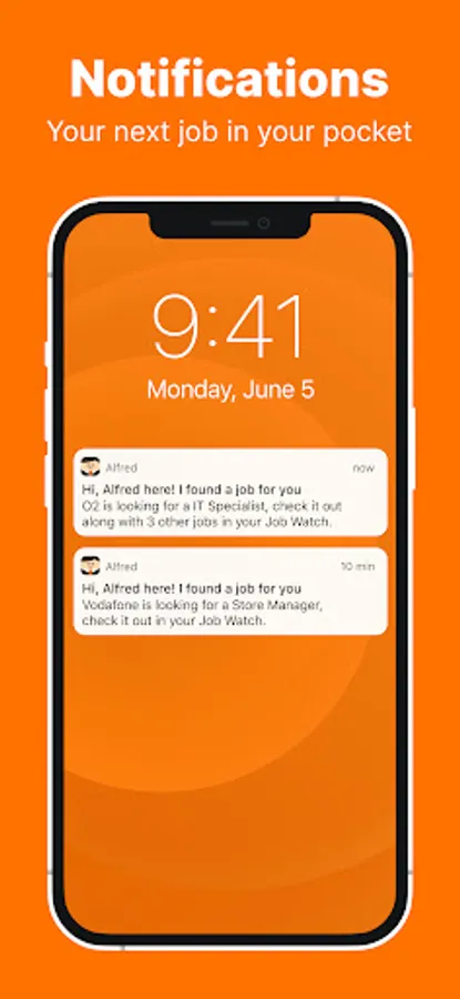 ● When a new job that matches your preferences is uploaded, Alfred delivers it straight to you and lets you know with an app notification, SMS, or email alert.