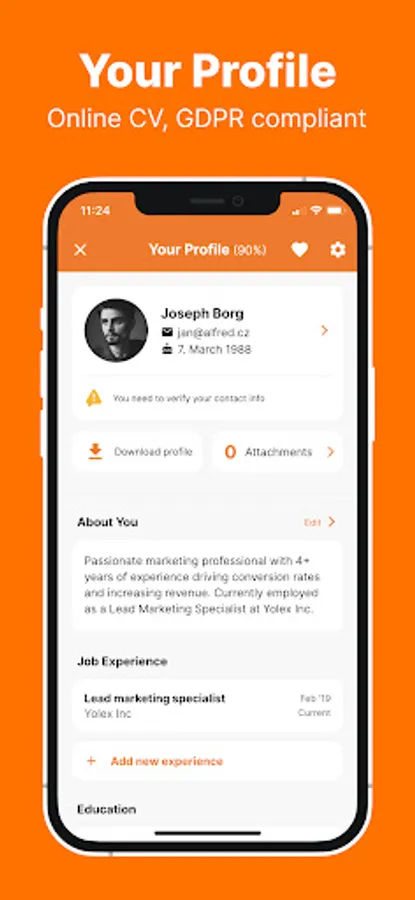 ● Alfred only shares personal data from your profile when you apply for a job. Personal data is anonymised and secured using the strongest encryption protocols. Your profile can't be searched, and Alfred never sells or shares personal data with anyone.