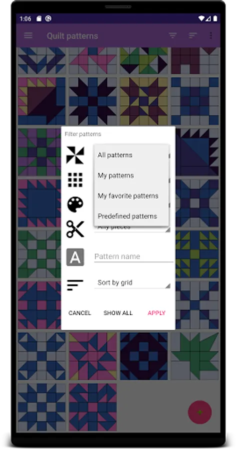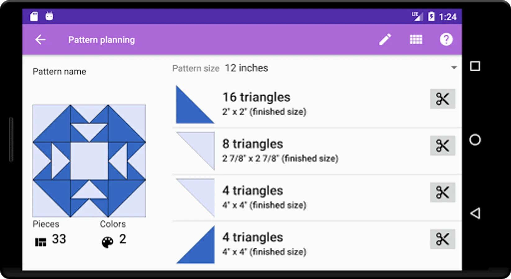 An app that allows you to create your own patchwork blocks and design quilts. Simply draw your idea and the app does the rest. It will do all the necessary calculations, add seam allowance, help you create a template, advise you how to cut and more. It will show how the block will look if you use your own fabrics.