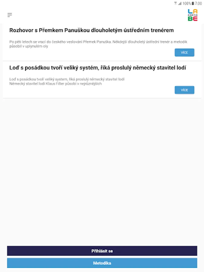 The Labe Arena application is designed for Czech rowers, canoeists and coaches to create training goals and monitor their fulfillment. Each user can write down their training results and compare them with a schedule from a coach who monitors and communicates with the entrusted athletes using this app.