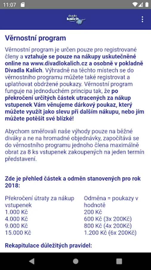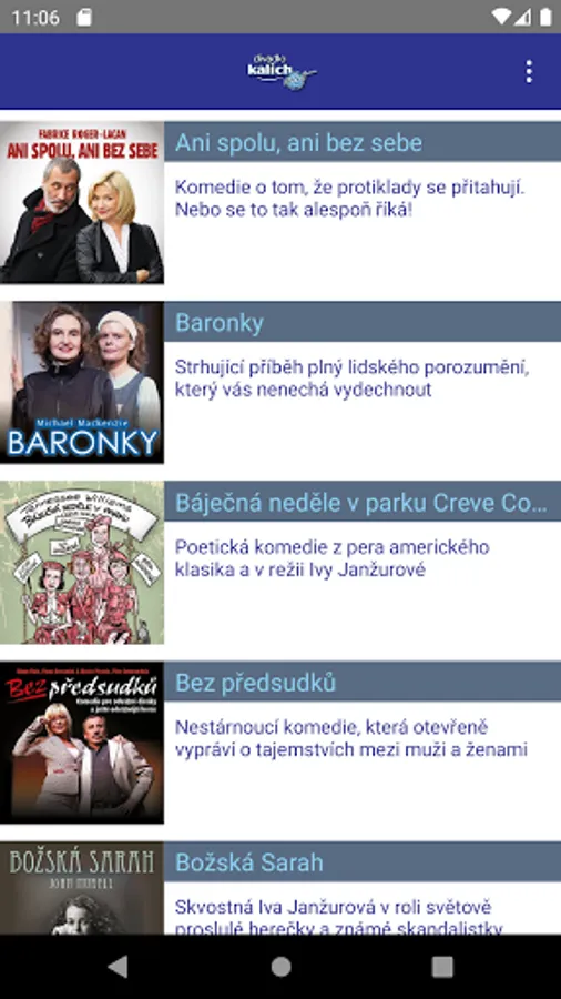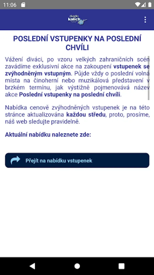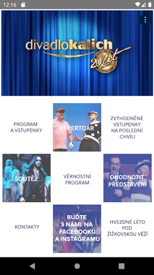 The theater in the center of Prague has been offering great entertainment for 19 years. He features musicals Hair, Pear, Mystery, Joan of Arc, Pomade, Eighth Continent, Heart King, Robin Hood, and Maugle. With the mobile application, you can keep track of all theater events, but especially about special events, pre-premiere and last minute tickets. The Kalich Theater Loyalty Program can reward you for the first ticket purchase.