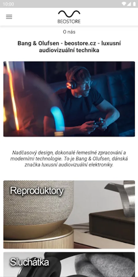 The Beostore application contains important information about the beostore.cz e-shop. Here you will find speakers, headphones, TVs and accessories from Bang & Olufsen. The application also includes important information about the e-shop, all contacts to the e-shop and also information about our showroom.