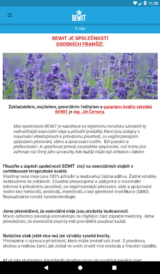 The BEWIT application contains important information about Bewit - a company of personal franchises. We are a purely Czech company offering essential oils of certified therapeutic quality and other products supporting a healthy lifestyle. Through the application you can order products, read information about the company, read news and much more. The application also contains a form, the necessary contacts, GPS navigation and important links.
