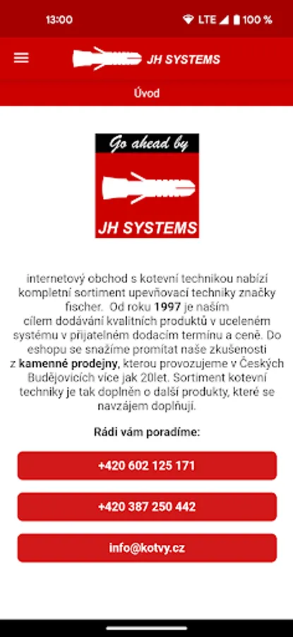 Kotvy CZ mobile application - store with anchor technology and connecting material. More than 20 years of experience in the sale of anchor technology is reflected in the online store with anchor technology.