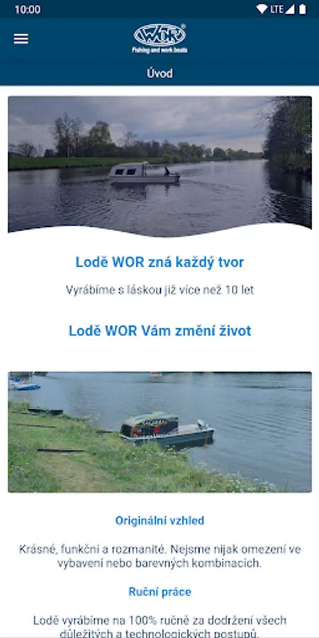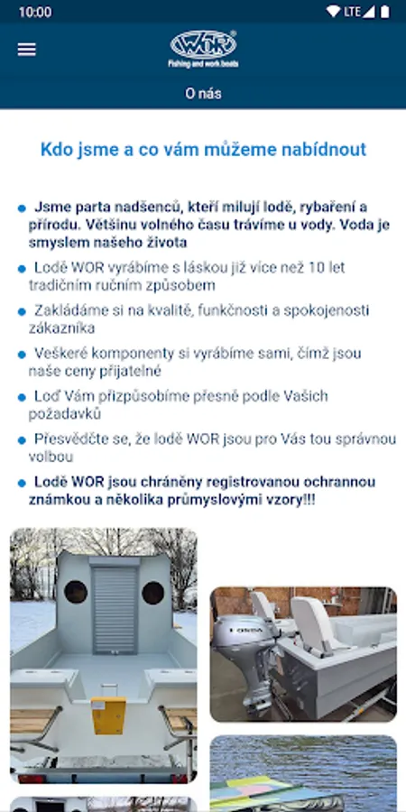WOR Boats mobile application - we are a group of enthusiasts who love boats, fishing and nature. We spend most of our free time by the water. Water is the meaning of our life, we make WOR boats with love.