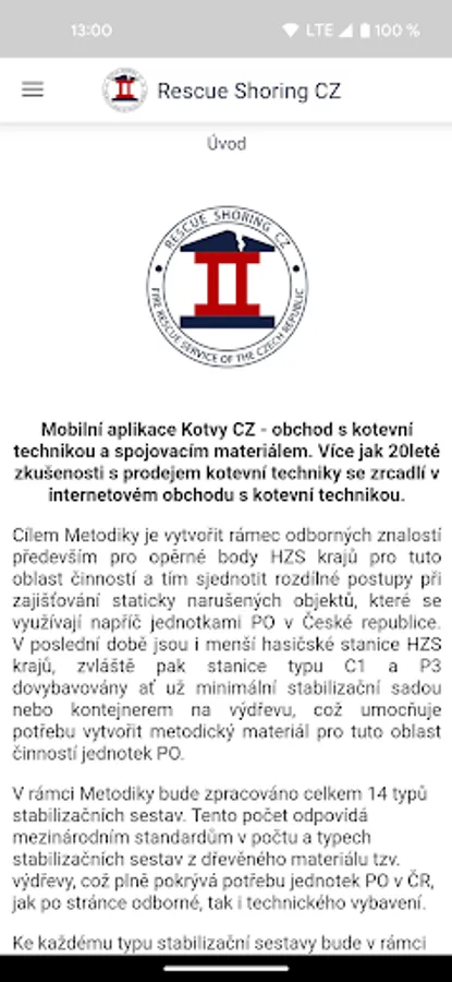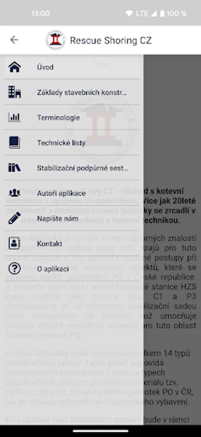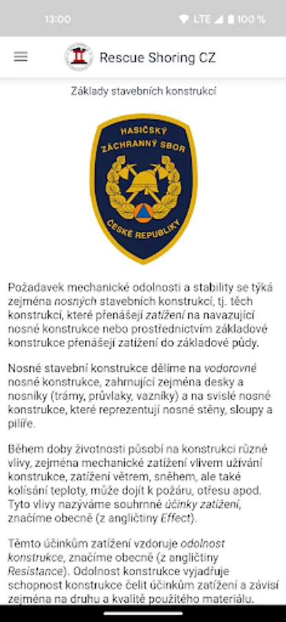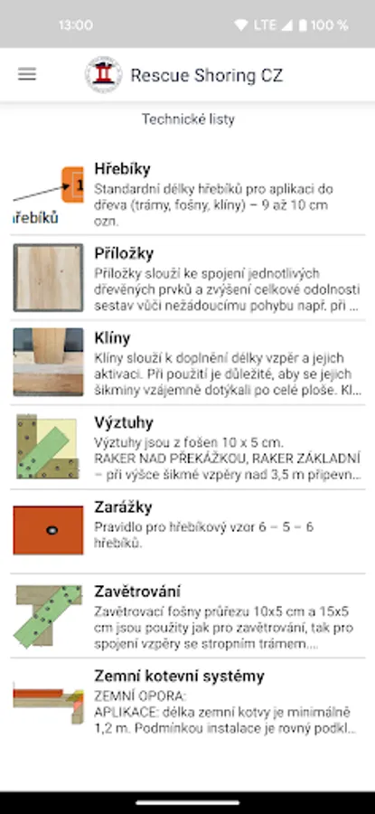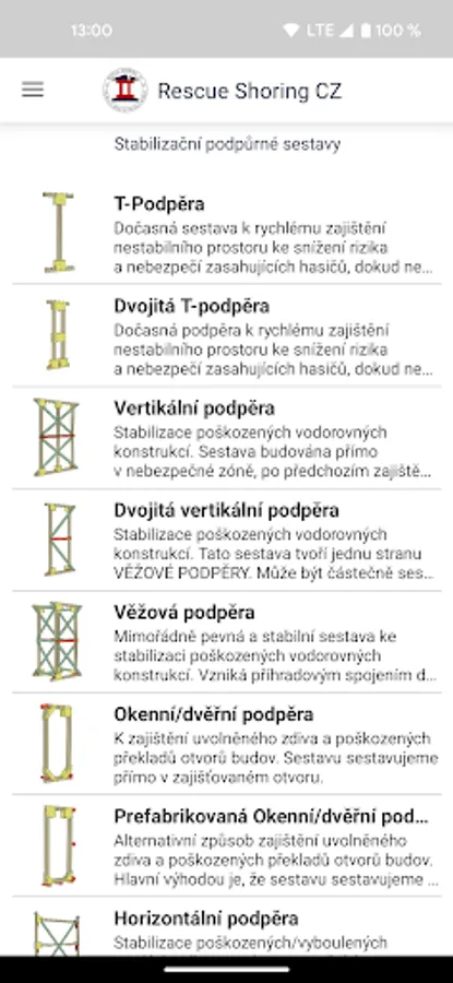 The Rescue Shoring CZ application provides important information on emergency securing methods for statically damaged structures