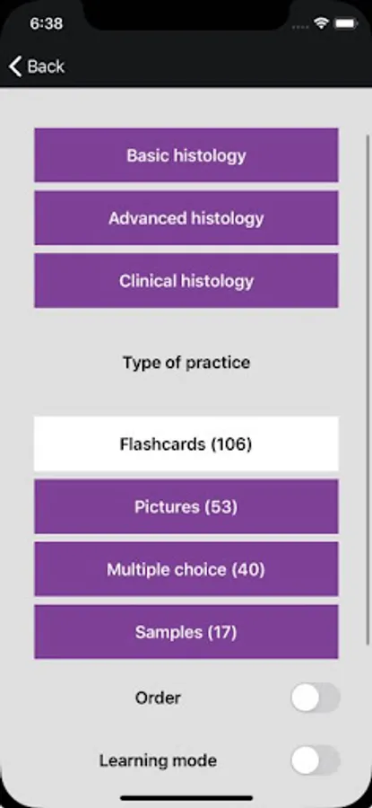 - Allows practice in the form of flashcards, multiple-choice questions or pictures