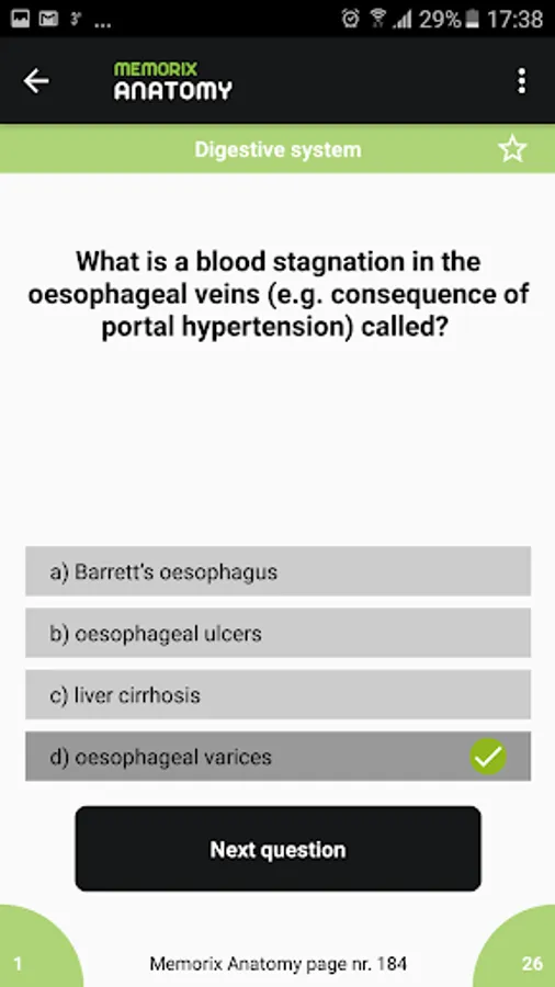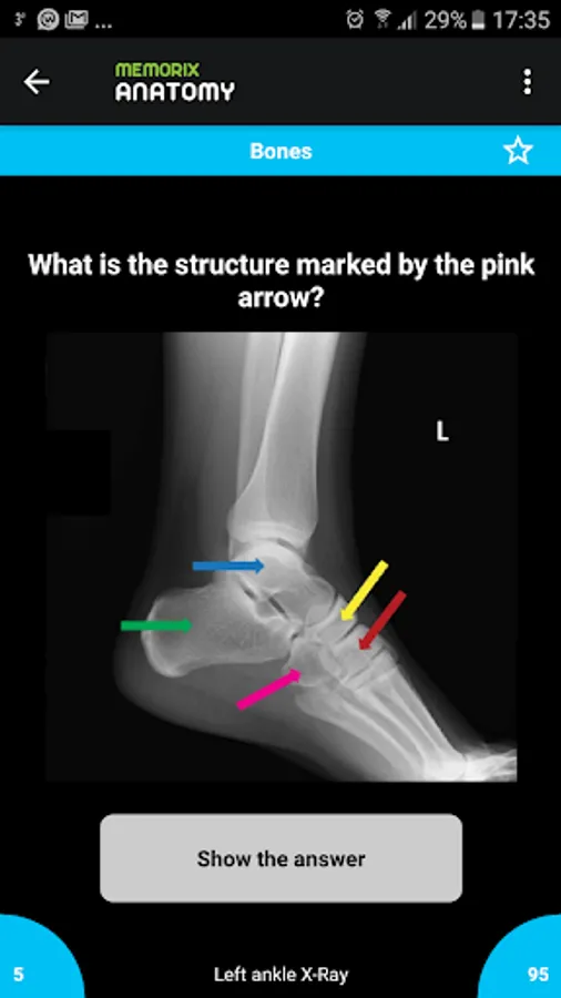 The majority of the questions are focused on essential knowledge of anatomy, which medical student needs to pass their final exam. For students with a passion for anatomy, we offer questions from the field of clinical anatomy.
