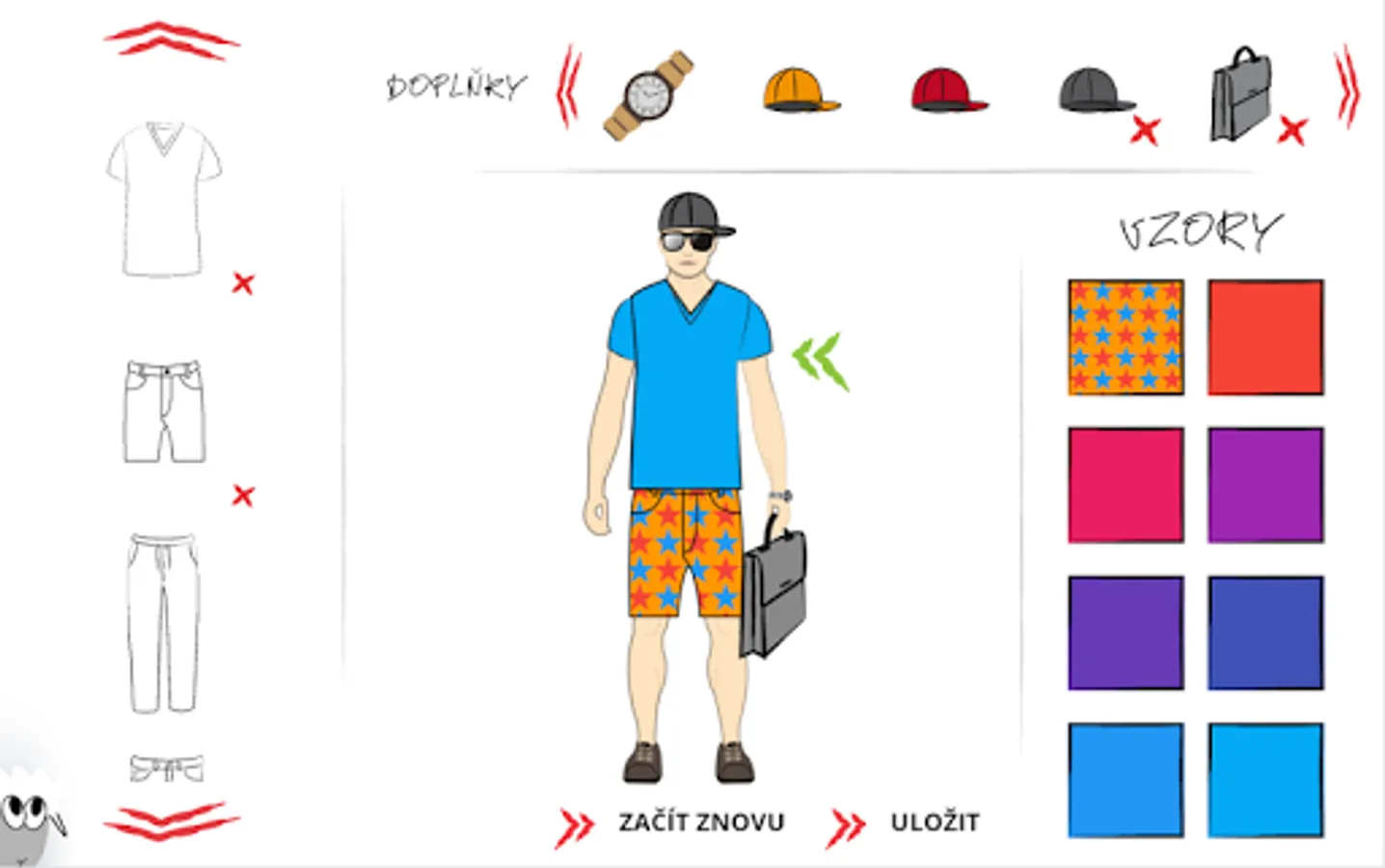 The entire game takes you through the Sheep and needles which can advise you how to create your own patterns of substances with different shapes. Then designed and substance use on any type of clothing in the wardrobe, where there are T-shirts, shirts, blouses, dresses and pants of various types and styles. For a better idea just to try clothes Eliska or Kajov.