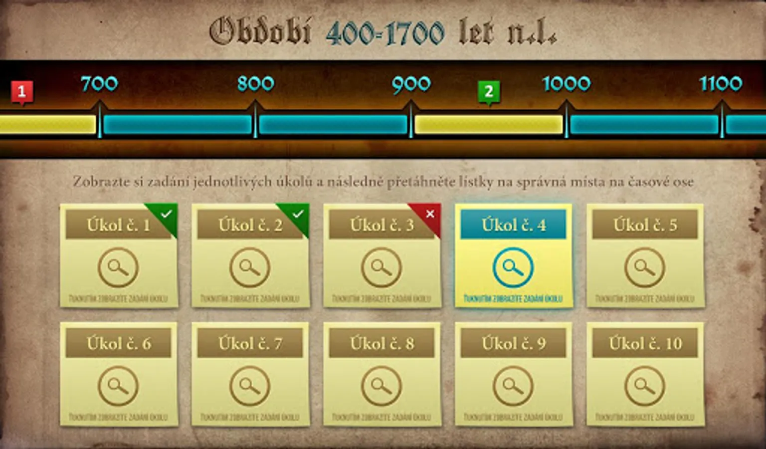 The application is used for practice concepts associated with historiography and simplify acquisition time enrollment. Mission is to conquer all countries for their government acquired and managed Karel IV. To solve the need to properly identify the topic generated pojmy history 7th year at the appropriate time axis or in focus groups. The application can be used in both teaching and self-study.