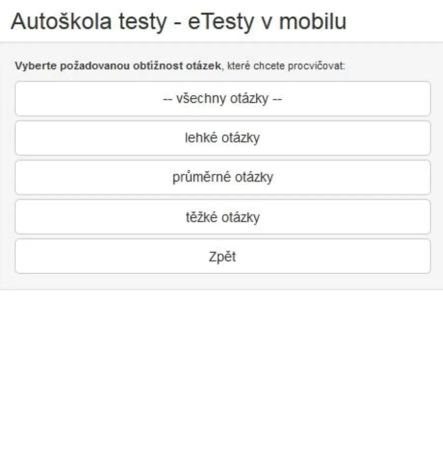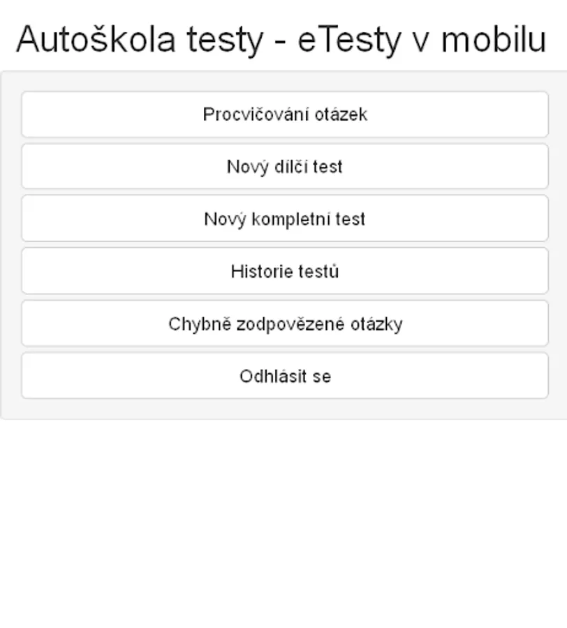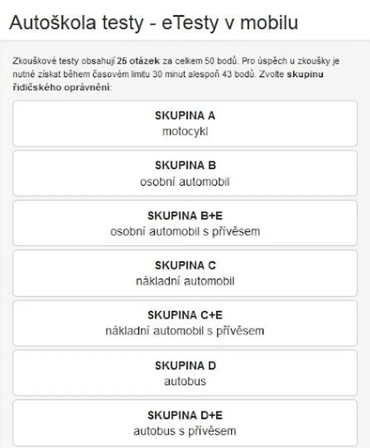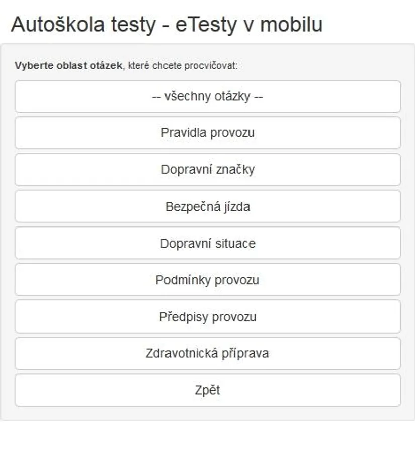Mobile version of the web application www.Autoskola-Testy.cz for driving school driving tests - a free alternative to more sophisticated paid versions.