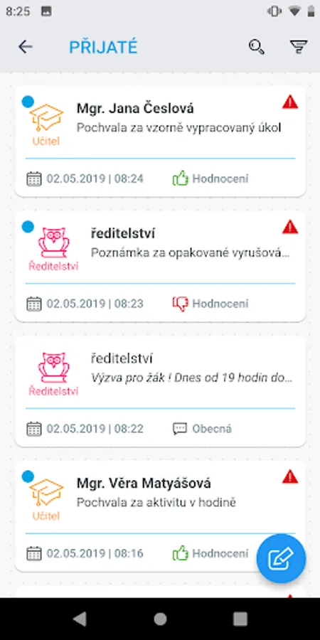 2nd generation of our official application for easier access to the Bachelors system on mobile devices. It is intended for parents, pupils and teachers in schools who use the system Bachelors - programs for school administration. The application allows access to display grades, schedule and substitution, homework, absences, communication between parents and school and other information similar to a web application. It allows teachers to enter a continuous classification and work with a class book.