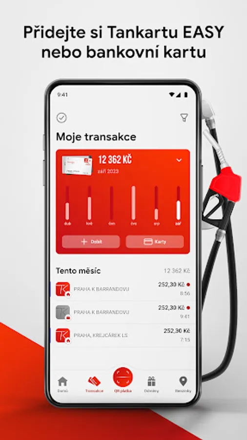 Pay with Tankarta EASY, Tankarta BUSINESS or bank card for fuel easily and quickly through the application. All you have to do is scan the QR code located on the stands at any gas station in the Czech Republic through the application. You can now pay with Tankarta EASY or Tankarta BUSINESS and get a discount for refueling.