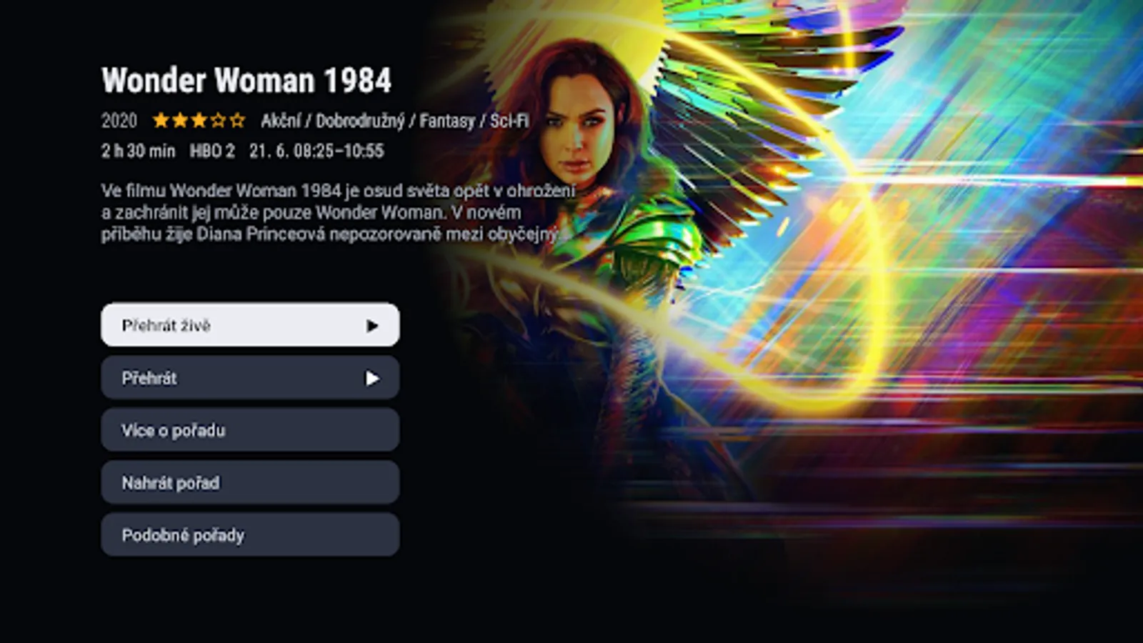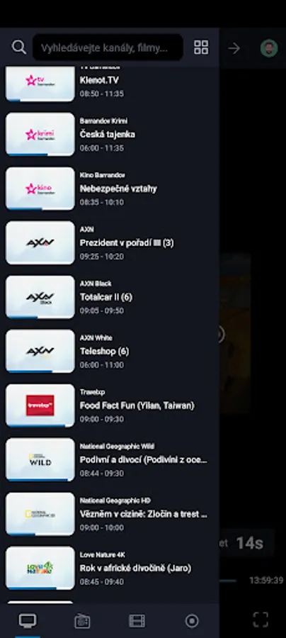 In addition to watching live broadcasts of Czech and foreign channels, we also bring you other modern TV services. Among the most popular are playback up to 7 days, personal archive, automatic recording of popular series and, of course, broadcasting in HD and FullHD quality.