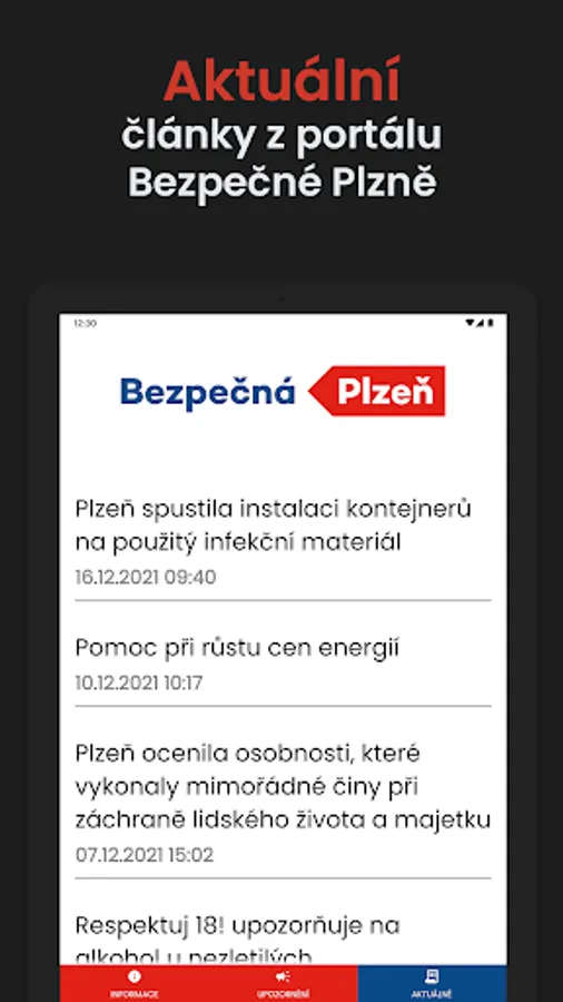 The Safe Pilsen application gives you an edge in moments when minutes can play a crucial role. This user-friendly application sends warning notifications regarding crisis, life-threatening events in the city of Pilsen. These can be, for example, floods, large-scale fires or the release of hazardous substances into the air. In addition to immediately learning what is happening and where it is happening, the warning notice also contains instructions on how to behave in the event of an event.