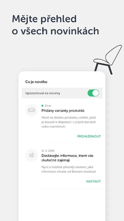 Make your home beautiful with Bonami! We’ll help you find inspiration and discover nice things for your interior just by downloading our app. In few clicks you can open up a way to fresh campaigns starting daily and to favourite items on stock.