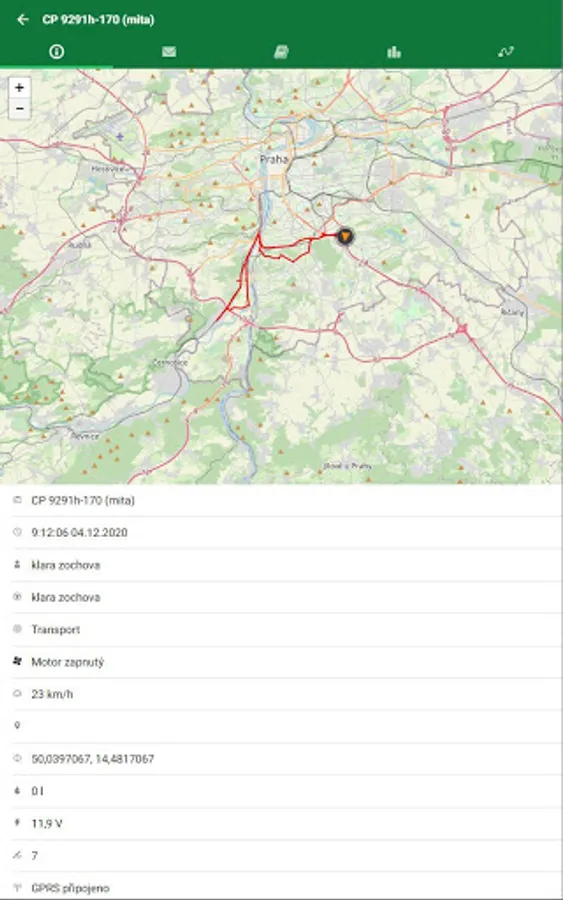 Online monitoring of objects for which system information about the current state of the selected vehicle is available (position, engine activity, time since last known position, driver's name, type of ride, GPS coordinates, current speed, superstructure activation, distance traveled since start of ride, current measured fuel level in the tank, etc.)