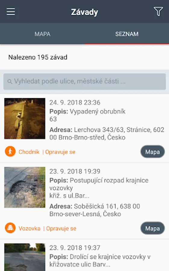 Application of Brno Communications Inc. (BKOM) Brňáci to Brno (BPB), which allows citizens to draw attention to defects on local roads or on roads II. and III. classes that are managed by BKOM.