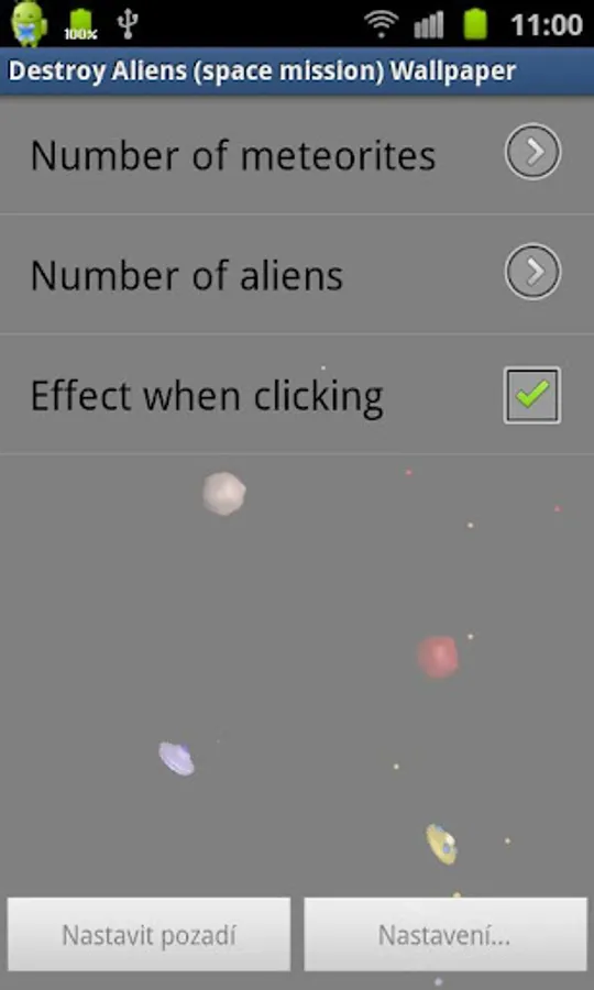 The number of meteorites and Aliens can be changed in the settings.