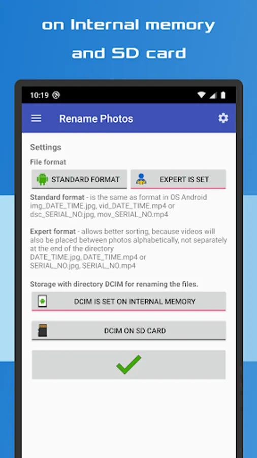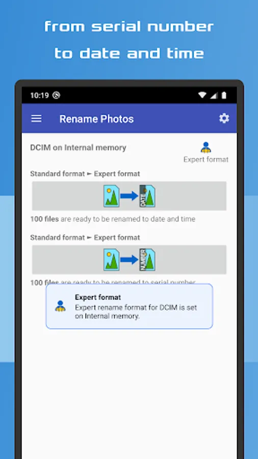 It is a great app for everyone. After renaming the files using the Expert format, videos will be placed between photos alphabetically, not separately at the end of the directory.