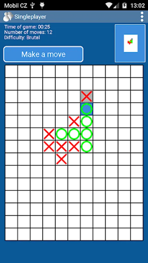 TicTacToe is classic Gomoku game we know from school. Here are rules for repeat: The one player who has five 5 a same marks (cross or circle) in a horizontal, vertical, or diagonal row wins the game. The opponent tries to achieve the same.