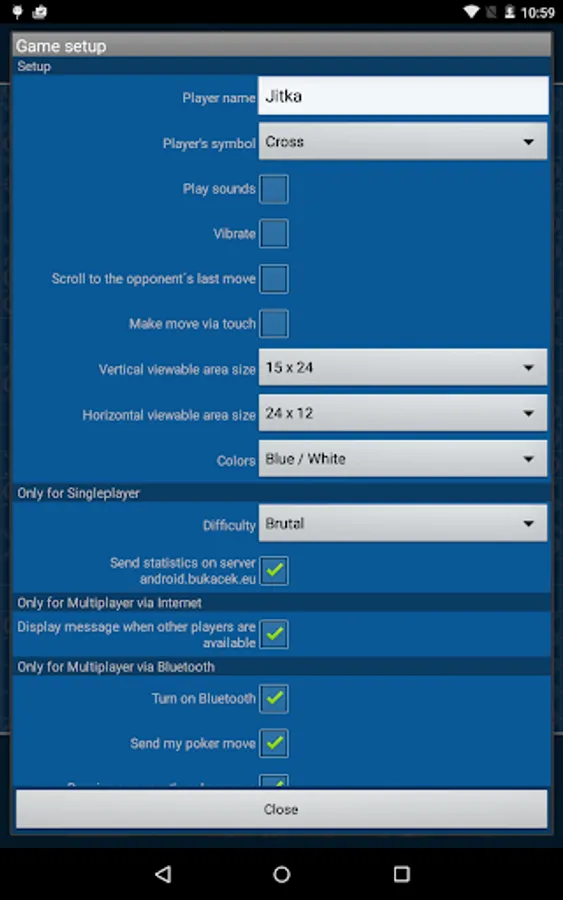 Singleplayer or Multiplayer via Internet (global), or Bluetooth, or one device, global statistics, skins, different levels of difficulty and more and more. Many opponents in the game.