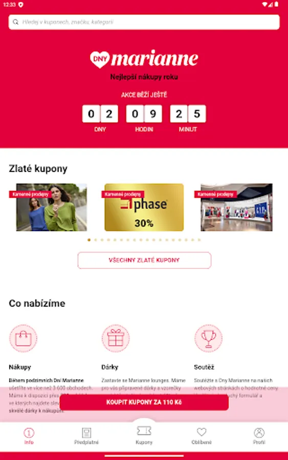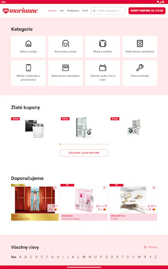 Enter the world of unlimited shopping possibilities with the Dny Marianne app! With us, you will experience the biggest shopping event full of amazing discounts twice a year - in spring and autumn. Our innovative application brings you electronic discount coupons that open the door to the best offers and benefits in the Czech Republic and Slovakia. Just one click and you will have a world of discounts and inspiration at your fingertips. Join us and experience shopping in a whole new way - download the Marianne Days app today!