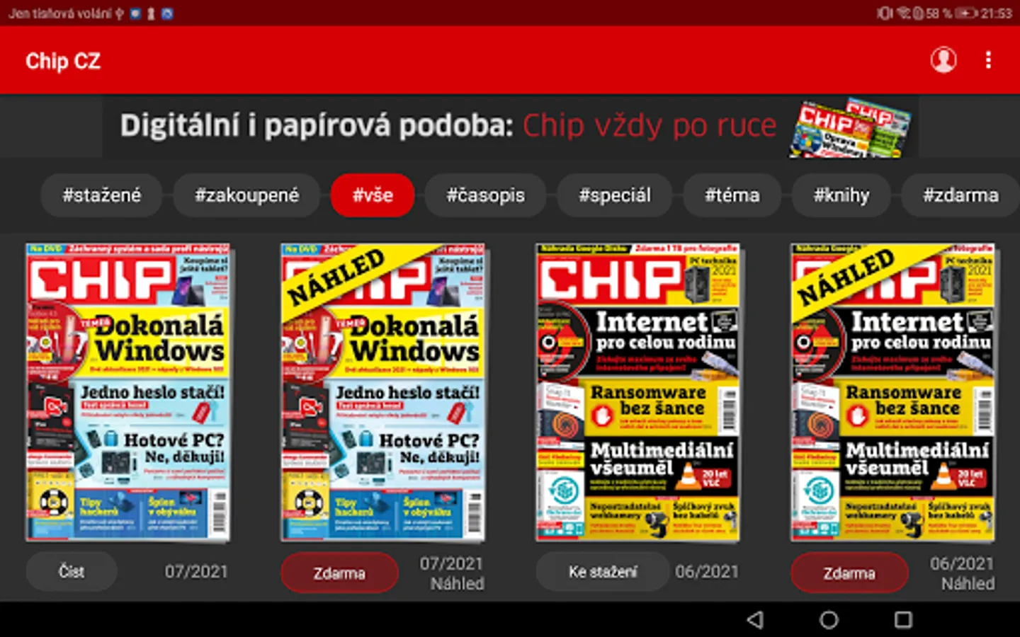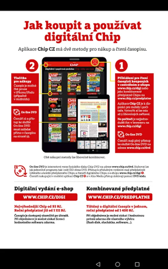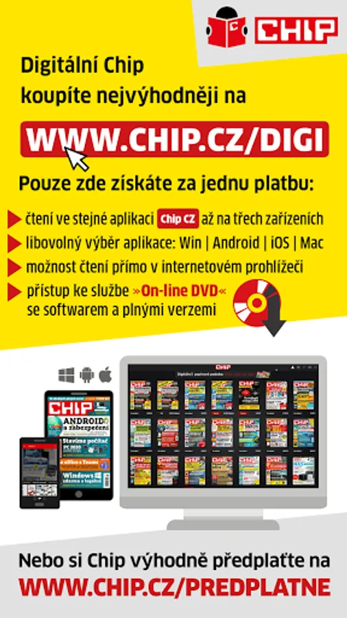 Chip magazine offers advantageous variants of printed, combined and digital subscription www.chip.cz/predplatne, which allows you to read the magazine simultaneously on different mobile phones, tablets and computers.