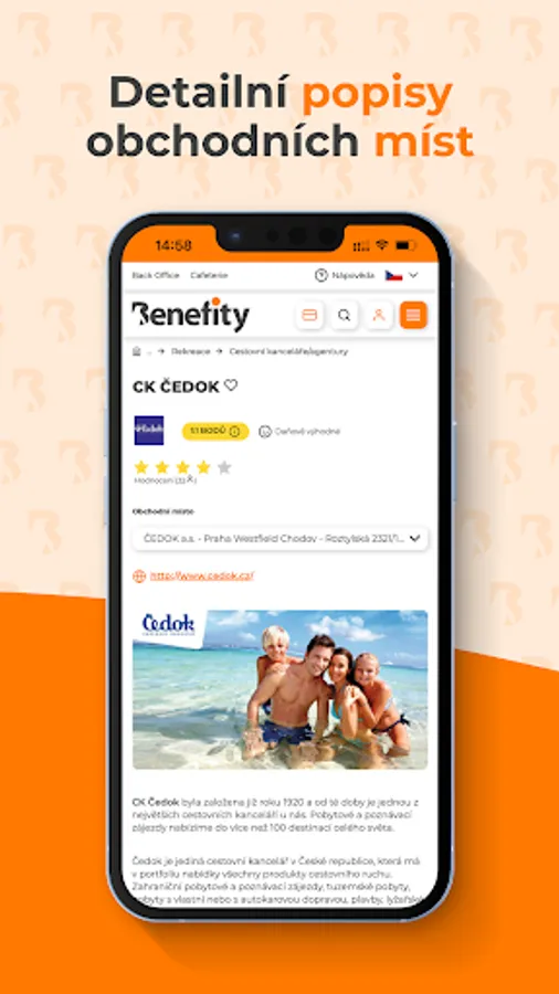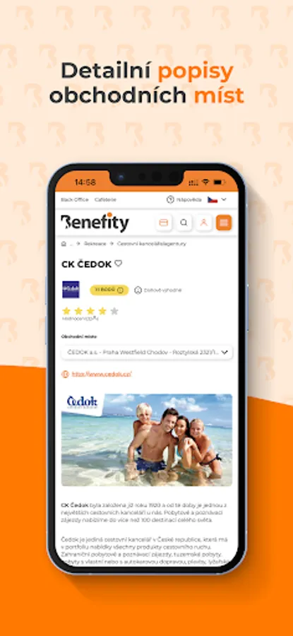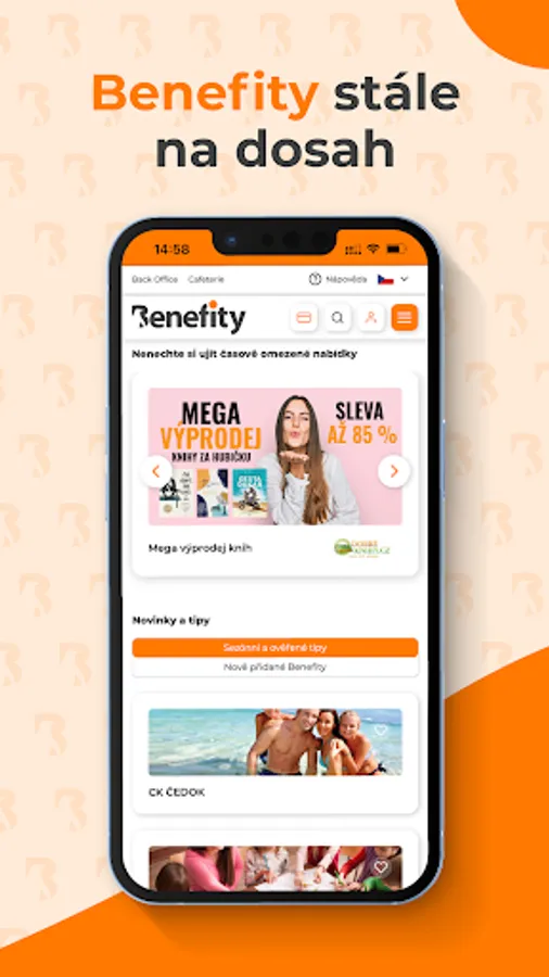 The mobile application is intended for all users of the Benefity a.s. cafeteria. Enter your username and password to log in for the first time. You can then set up a more convenient and faster login using Face ID or Touch ID biometrics.
