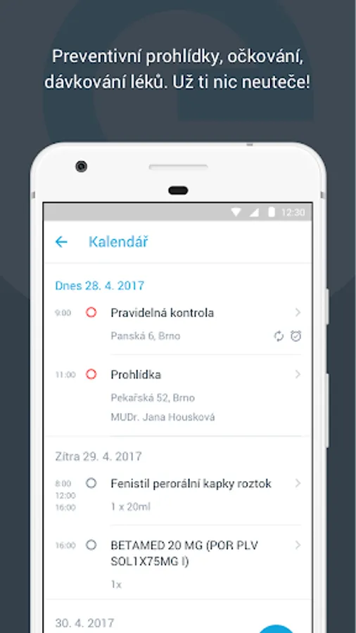Another great feature is sharing data within the family. The application will warn you in due time of impending preventive examination of children, mandatory vaccination or dosing medication.