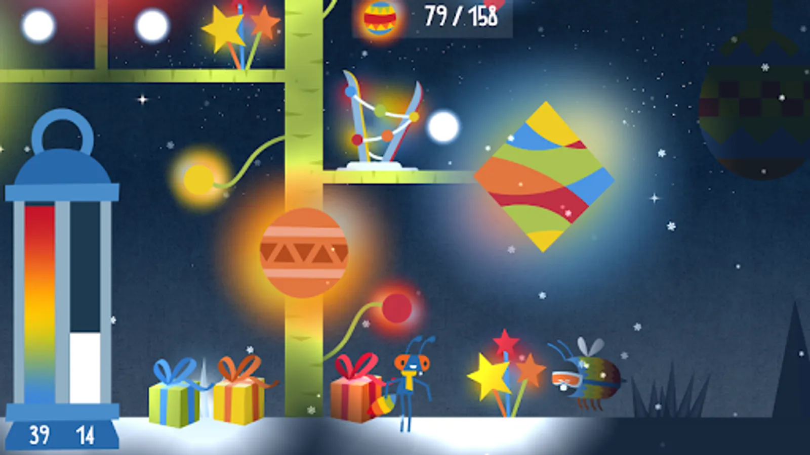 The squirrels were stocking up for winter but accidentaly hid all the presents for little bugs. Can you help ant Eeney find the gifts and put them back under the tree?