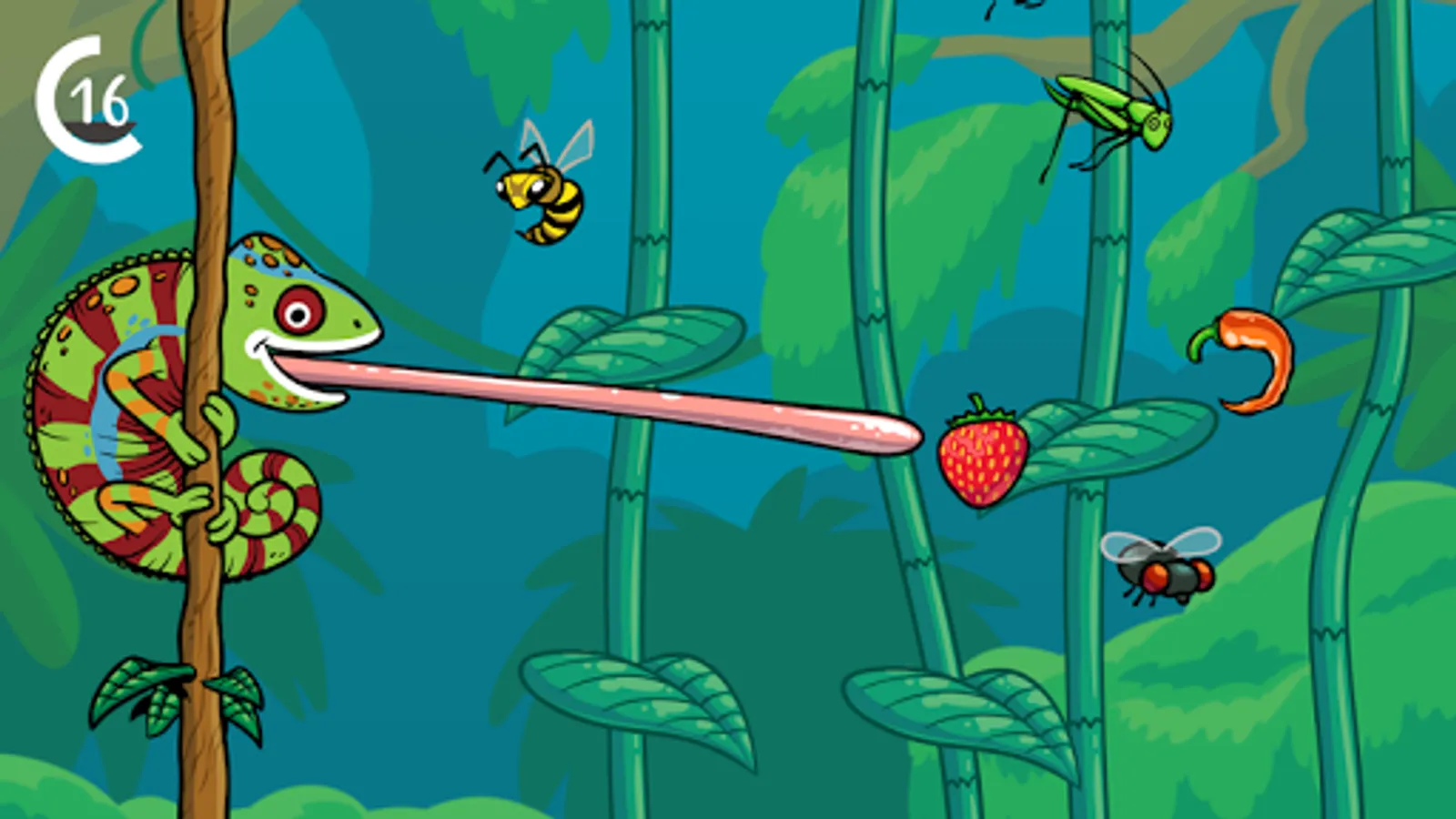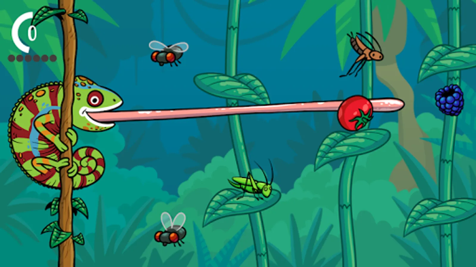 Chameleon Charles would like to know what happens when he swallows the sun. Does he turn yellow? On the way up, he needs to eat, of course. Can you help him catch the crickets, flies and grasshoppers? Just keep an eye on the time that is running away quickly. The game is an extension of the Czech TV show Terčin zvířecí svět.