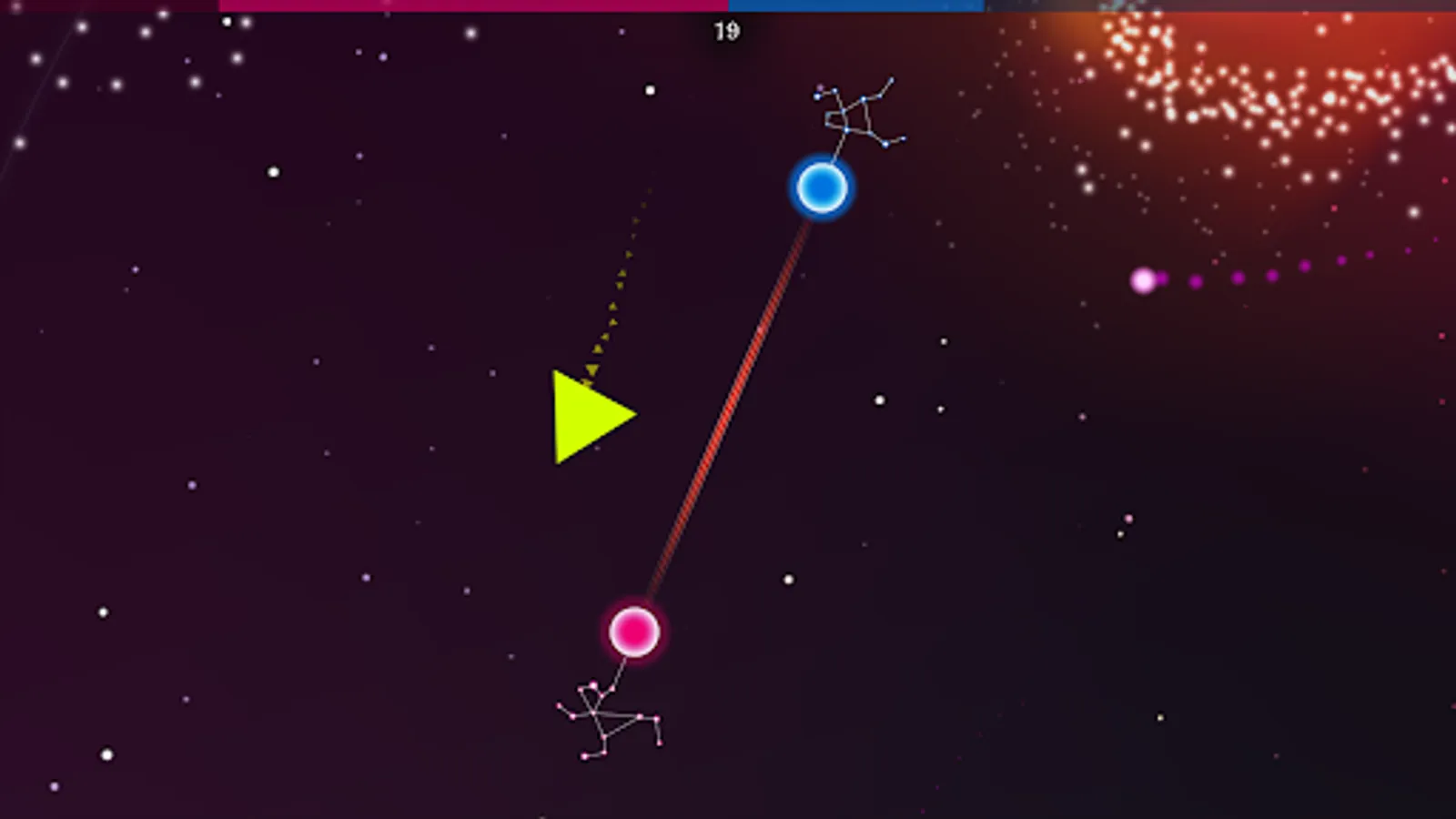 The constellation of dancers is already ready on the heavenly floor. Another night of dance and elegance is just beginning. Invite a friend, sibling, mom, dad, or even a grandmother to dance. Or dance alone. Catch comets in the connection between your dancers and avoid other space bodies.