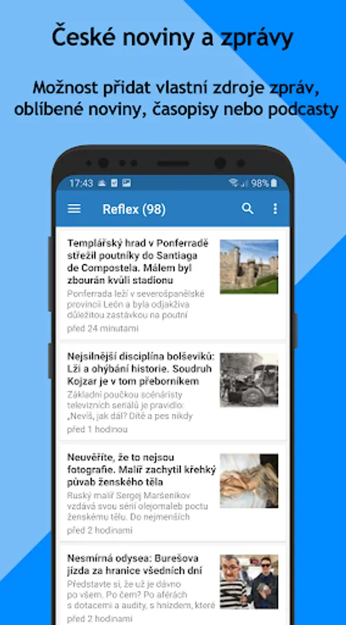 Simple personal RSS reader of Czech newspapers and current news. Preset basic sources. Ability to add your own read resources.