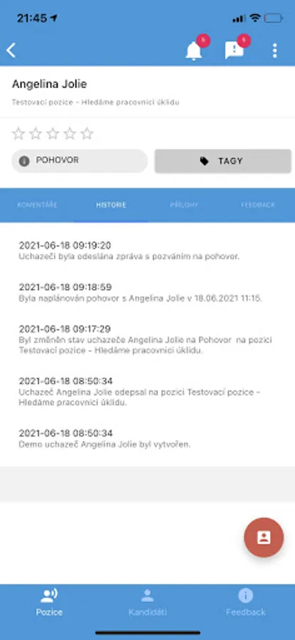 The application is an ideal tool for the hiring manager, to whom the recruiter distributes information about the candidate directly to the mobile phone. Through the application, the hiring manager can very quickly provide feedback to the candidate recruiter.