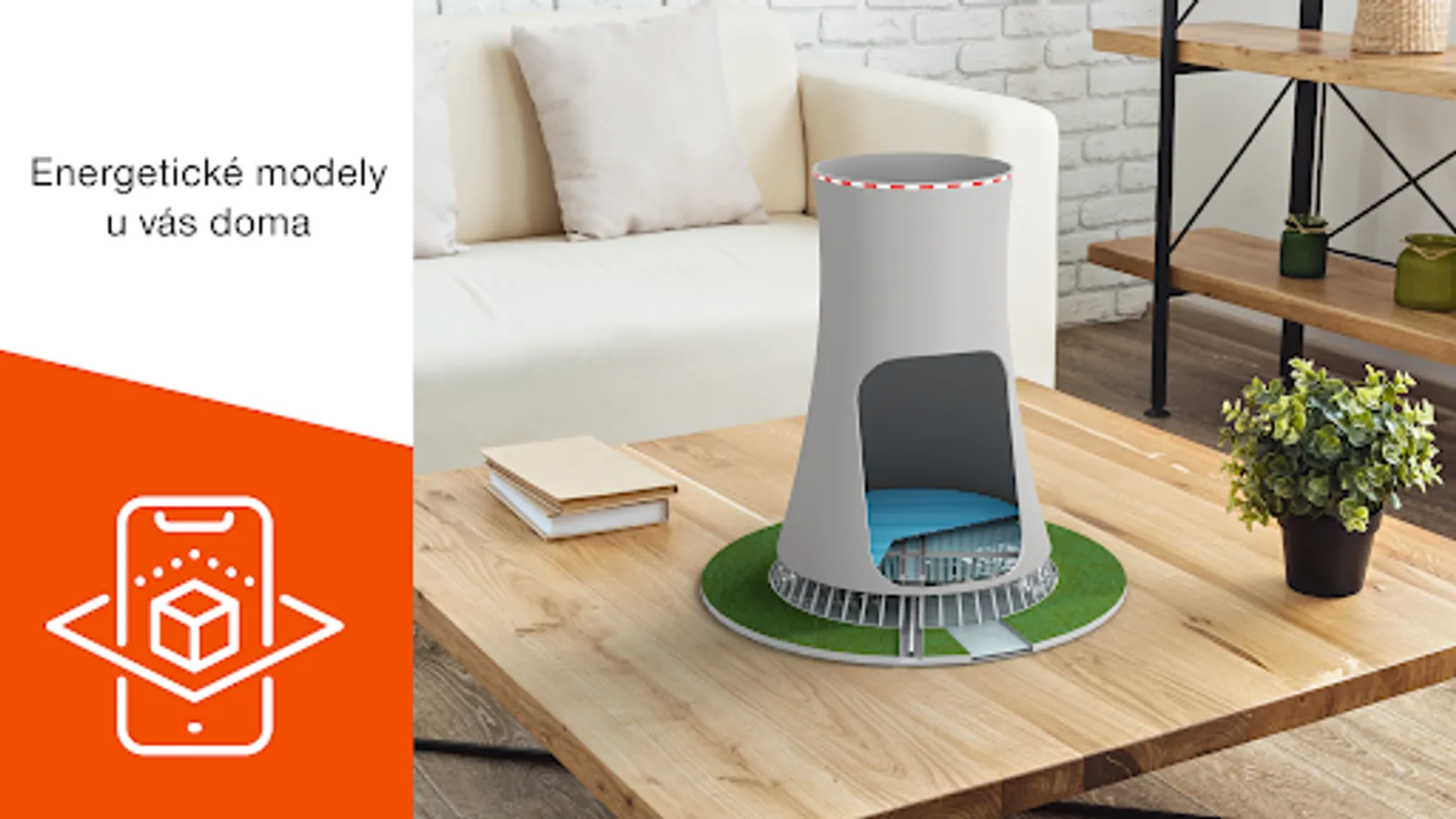 The AR energy application contains models of various energy equipment that you can view in so-called augmented reality, i.e. in connection with the real world using the camera on your phone. The models go across the entire spectrum of energy and cover most of its areas such as nuclear technologies, hydro and solar power plants, and last but not least, they contain objects from the distribution and transmission system.