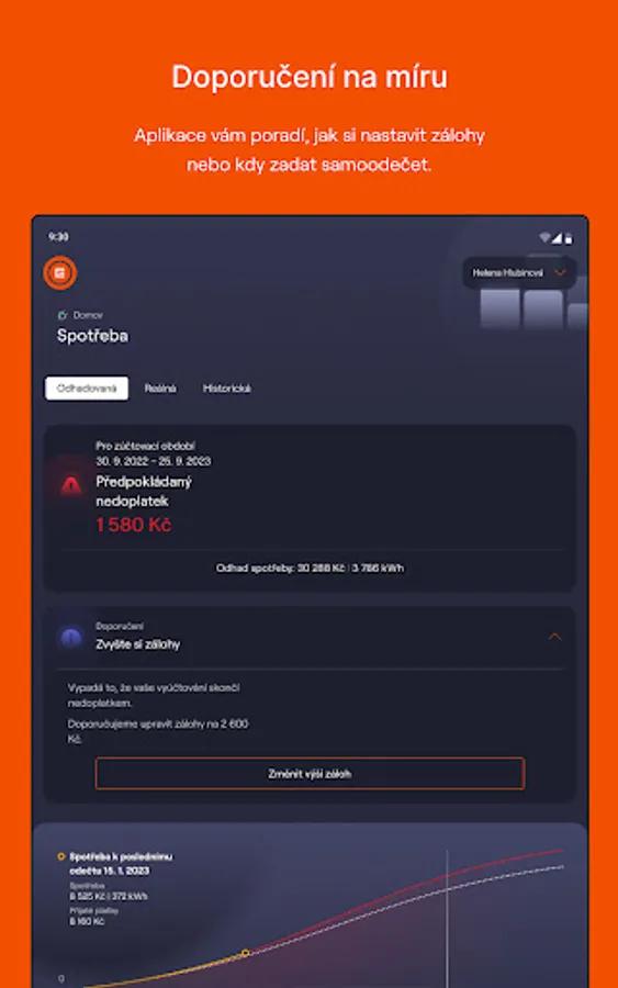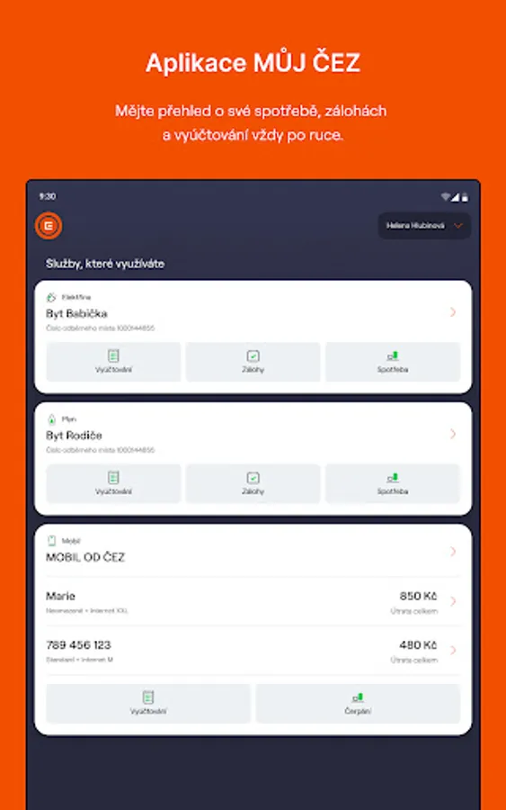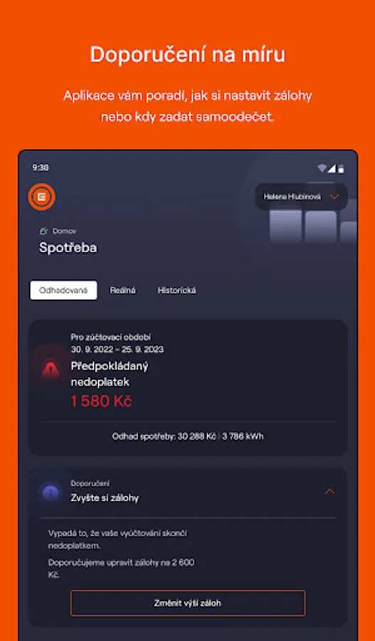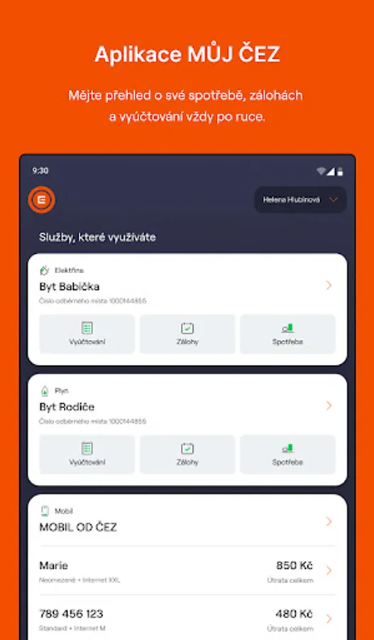 You no longer have to go to a branch or call the customer line. In the application, you will find information about all payments and advances, including those in front of you. You can adjust your deposits here or pay directly online. So is billing. You can find them all stored in one place in the application, so you no longer have to print anything and file it.