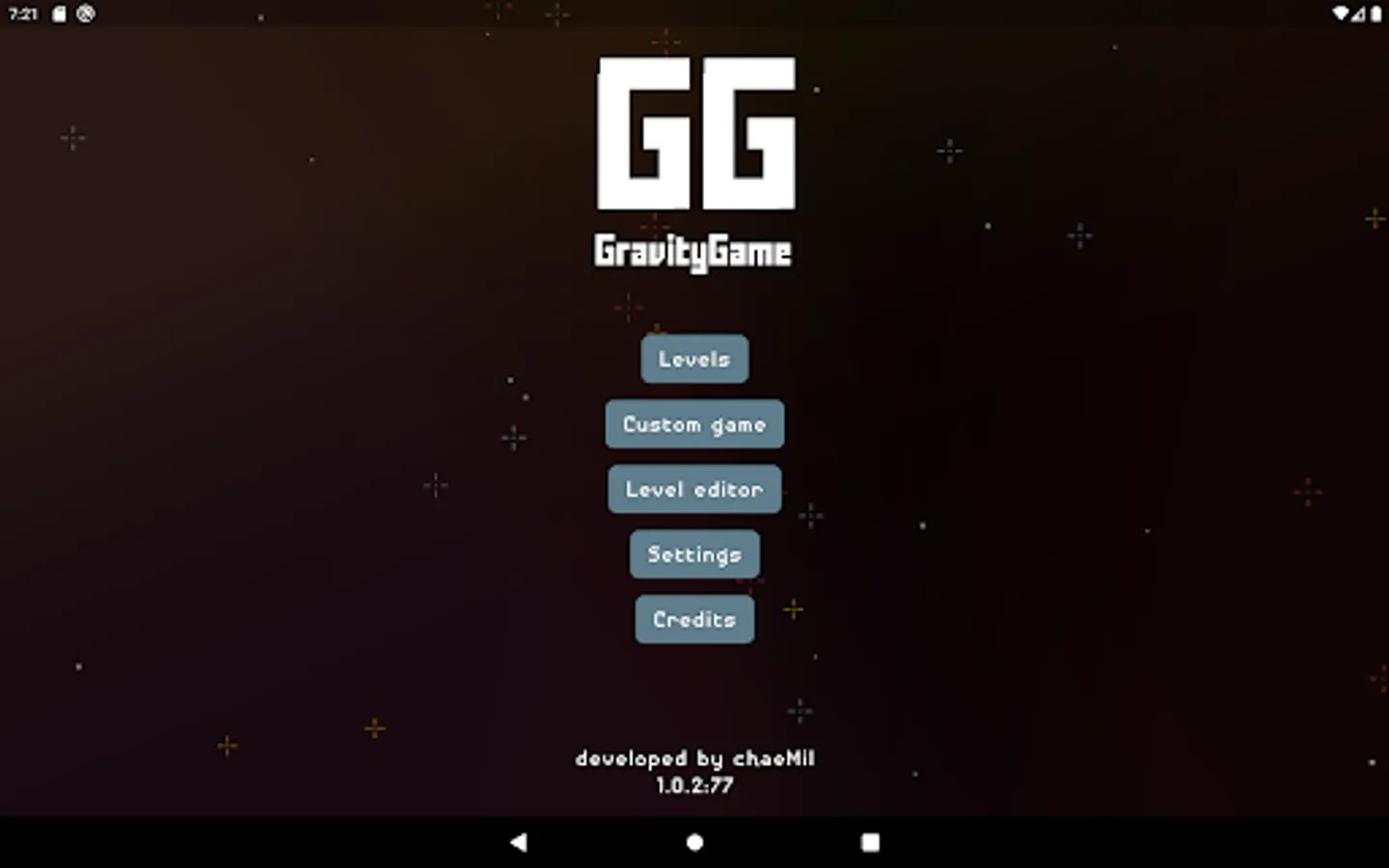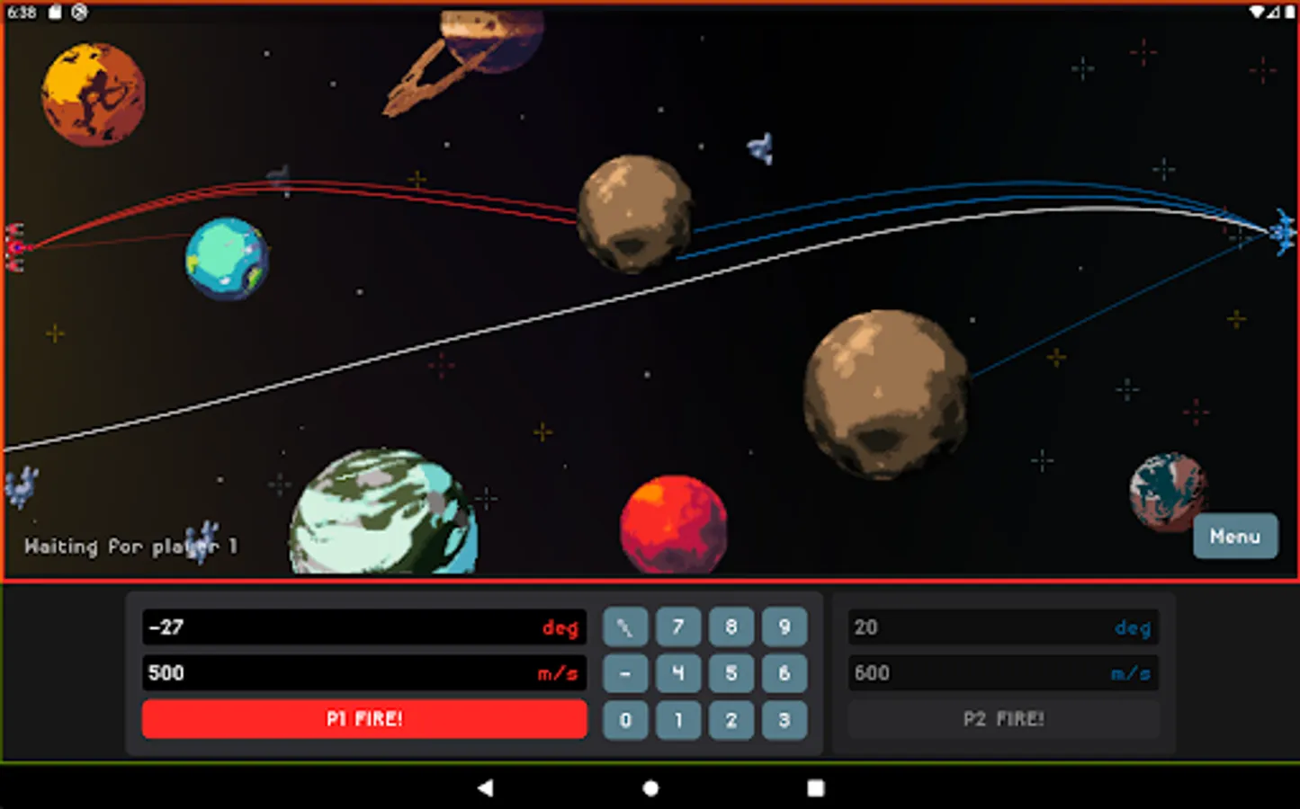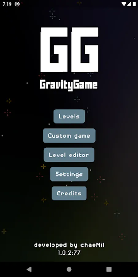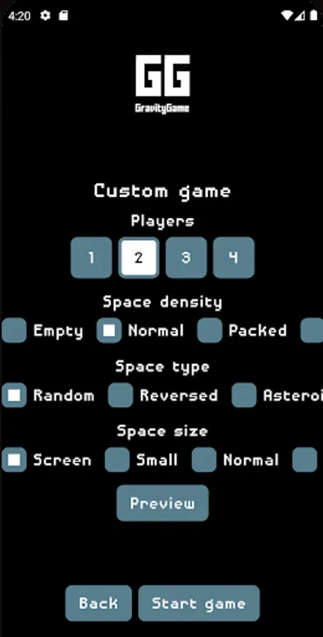 Gravity Game or GG for short is a game where 1 to 4 players are fighting against each other or an AI in universe filled with planets and asteroids. Each turn player inputs angle and velocity for his projectile to be fired between the gravity influencing planets and other players ships. The goal is to stay alive and eliminate all other players.